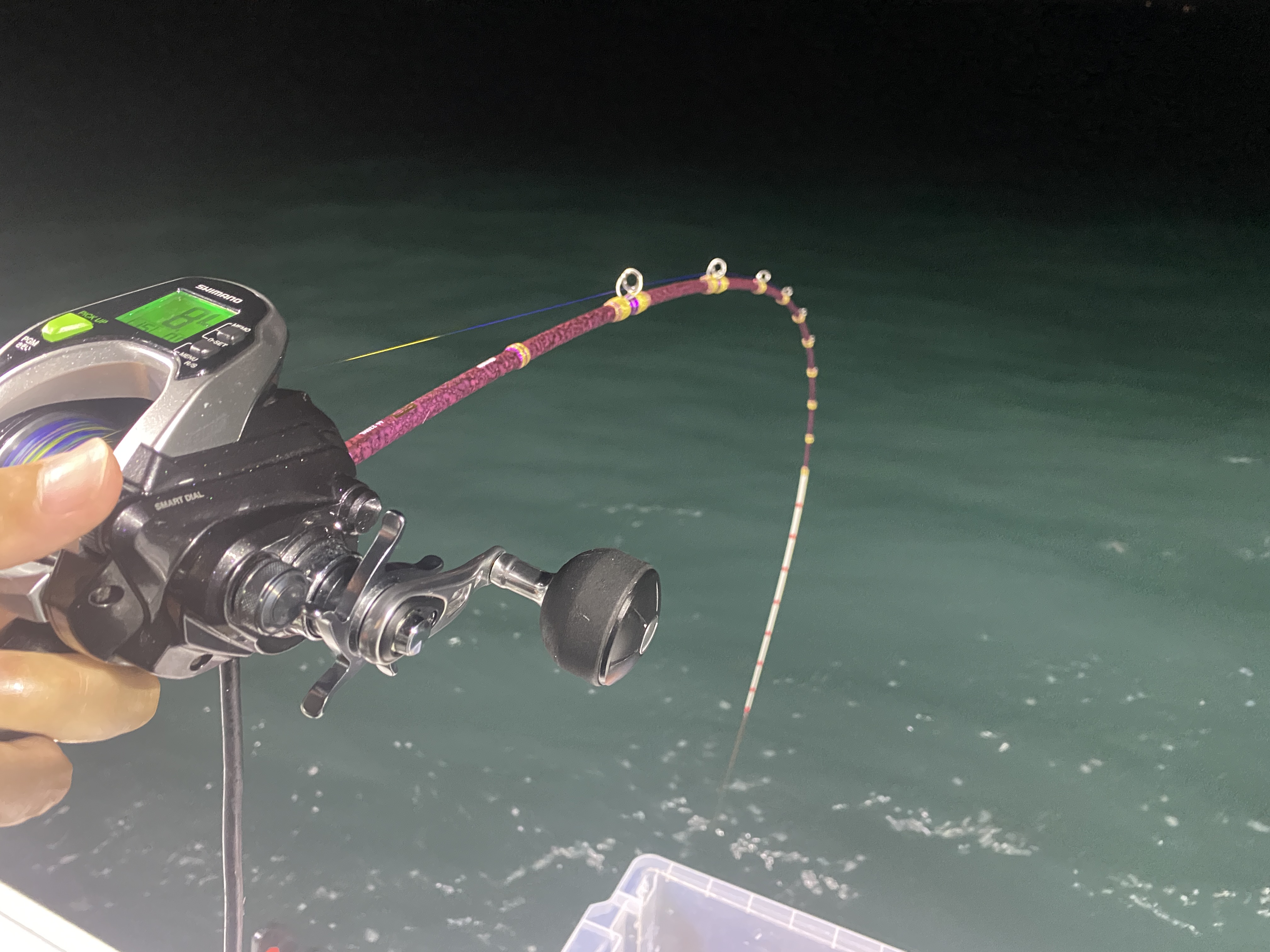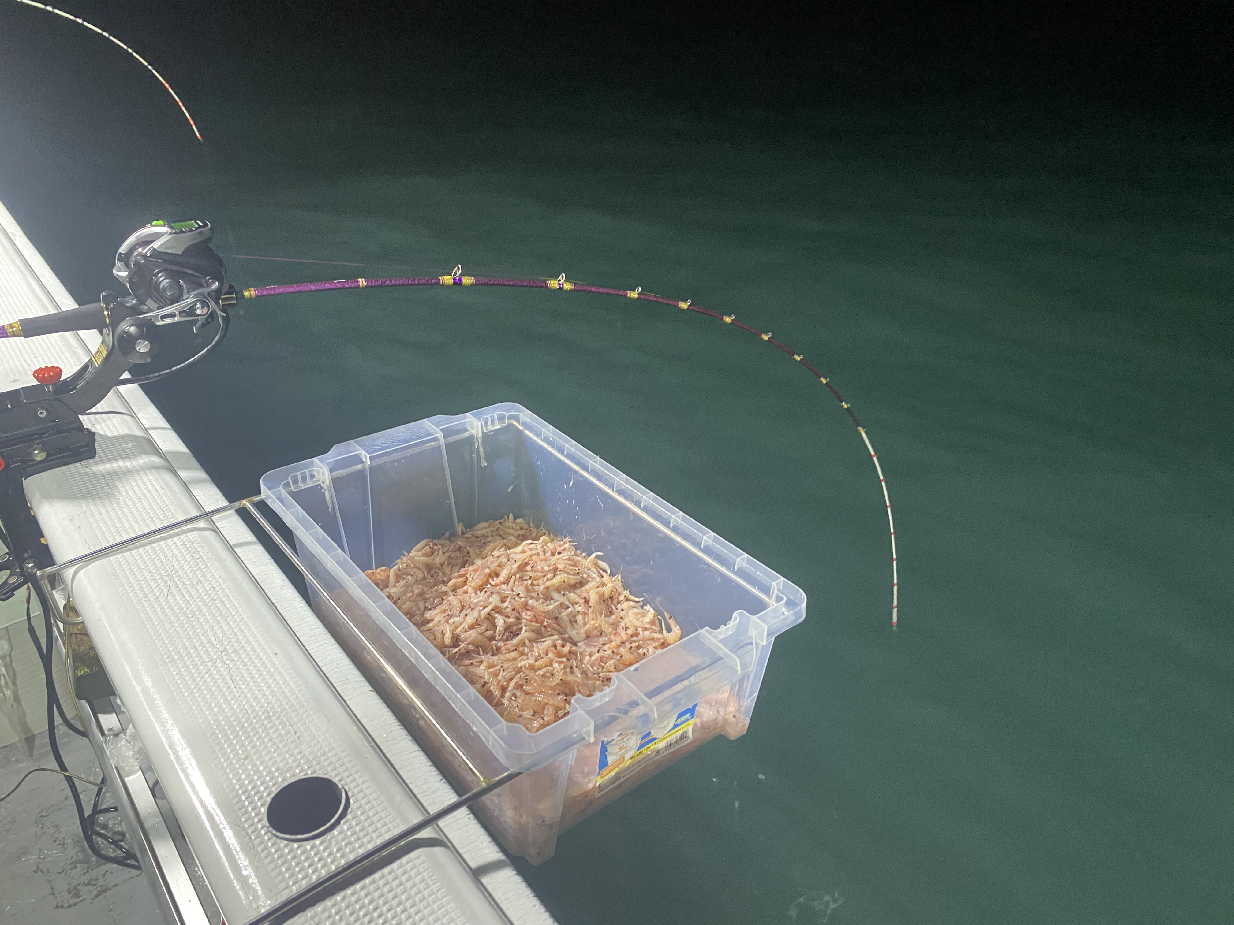 夜7時出船なので暑くなく快適です。最初の内は船中でチダイやカイワリがちらほら。