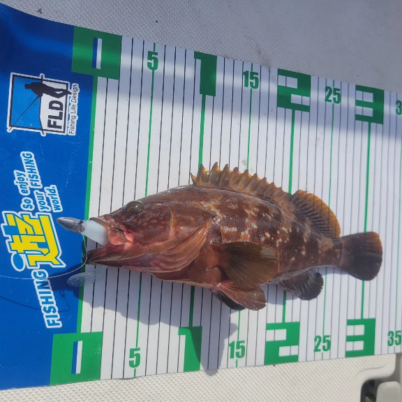 しばらく行けてなかったマイボートで釣行してきました。灼熱なので短時間で近場の魚礁狙い。いつものドリームシャッド3.5inアラハダグロー&DSヘッド16gの組み合わせで魚礁のトップをスイミングで狙っていきます。潮の流れを考え船が魚礁をかすめる潮上へポジショニングして開始!うまく魚礁トップにジグヘッドがタッチした瞬間に32㎝のキジハタがヒット!その後も船を流すラインを微妙に変えながら同サイズのキジハタとカサゴを追加して2時間ほどでしたが終了としました!ここ最近、キジハタの魚影もかなり濃くなってきてますね。この先さらにサイズアップした個体が増えると楽しくなりそうです!