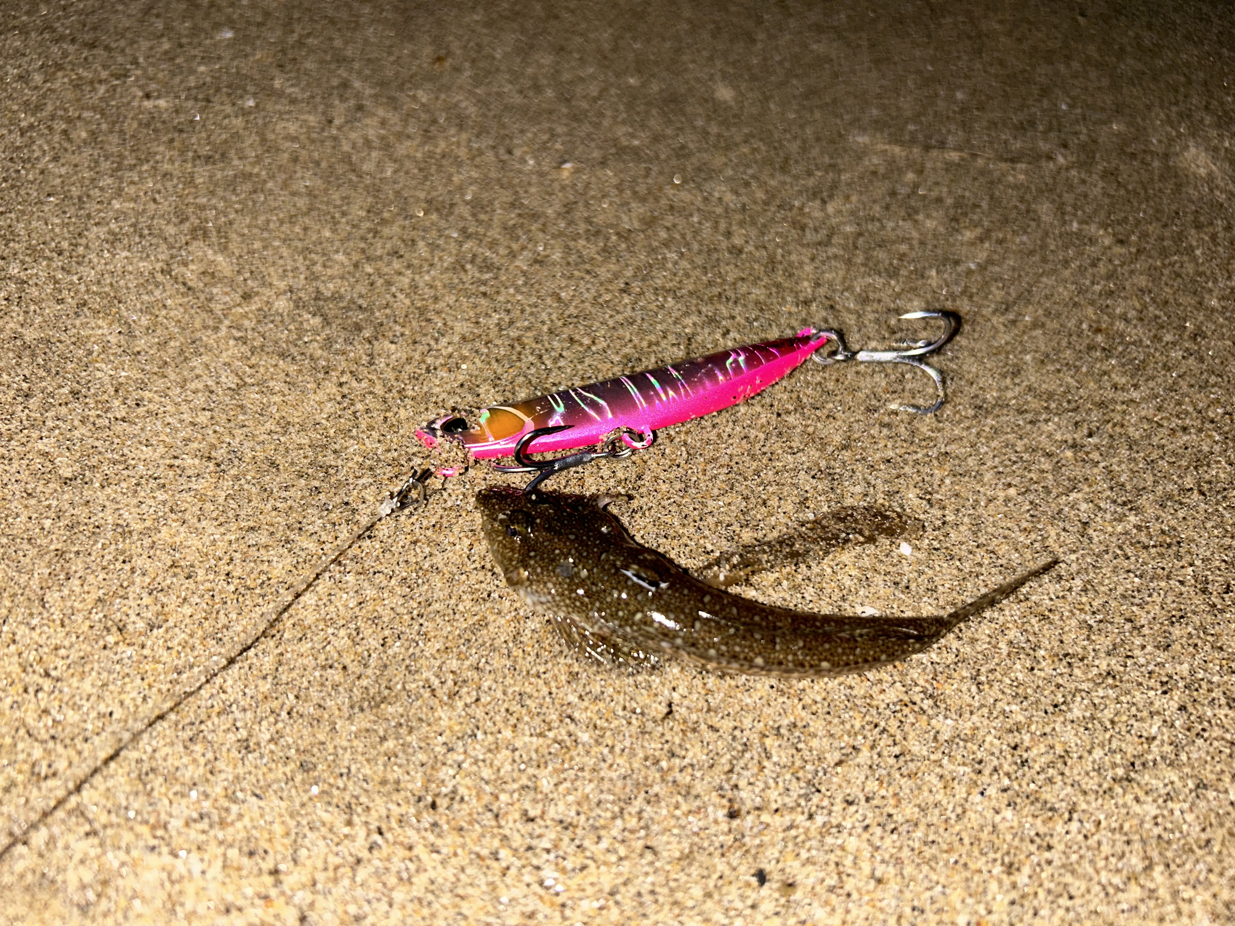 ルアーはDUO様のフリッパー32グラム!フルキャストして沖のブレイクをフワフワ巻いてくるイメージ底から30センチ以内をリフトアンドフォールさせながら巻いてくるとヒット!激しく首を振ります上がってきたのは元気なマゴチ!その後も1匹追加して終了!暗くなるまでの短時間で釣れてくれたのでよかったです!皆様も熱中症にはきおつけて夏のサーフフィッシング楽しんでみてください!