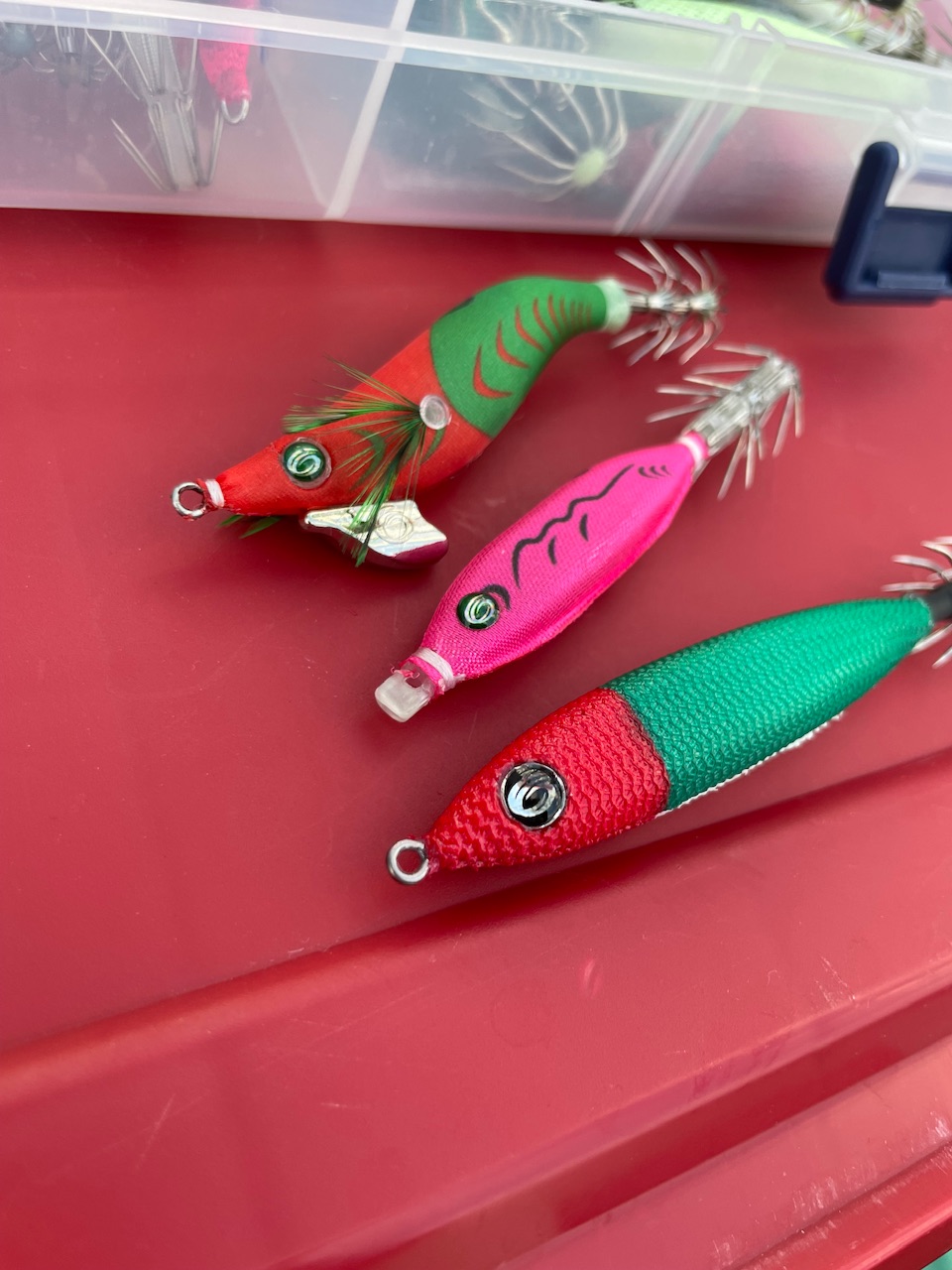 今回使用したのはロッドはオーシャンウィップイカメタルB65Nを主に使用しました!スッテはメタラー15〜20号ドロッパーにサンドバッカーシリーズとハードパンチャーシリーズを使いました!オーシャンウィップイカメタルはエントリーモデルとして発売されてはいますが使用感は最高!白色穂先なのでアタリ見やすくこれからイカメタルを始めるという方におすすめの1本です!是非今年は三重方面でイカが沢山釣れています!是非行ってみてください!