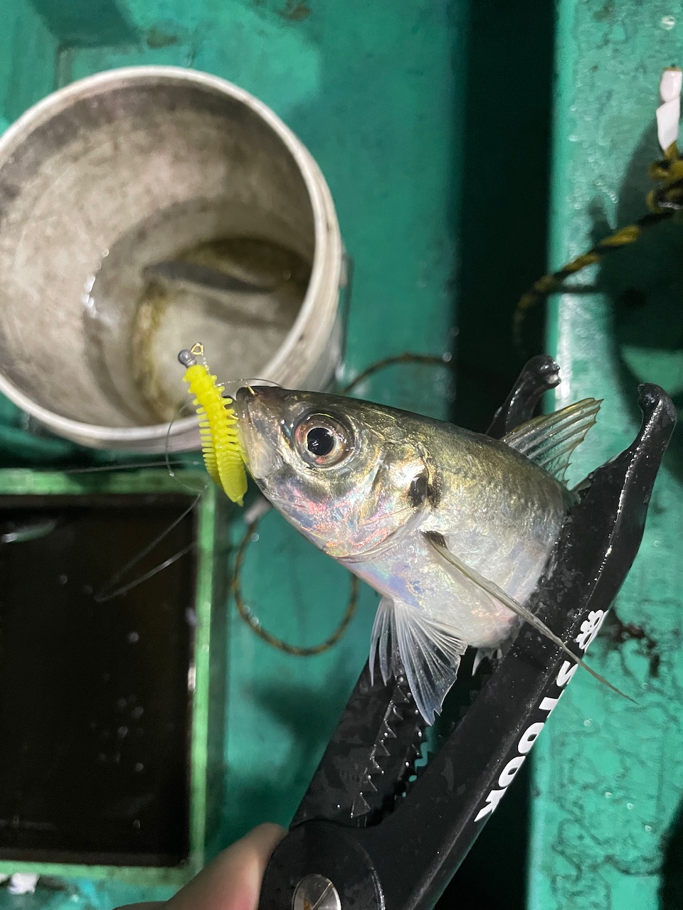今回は三重県熊野市から出船されている黒潮丸さんでイカメタルに行ってきました!今年の三重県はイカのアタリ年!各地でイカメタル爆釣中です!!期待を膨らませ出船!まだ明るい時間帯!明るい内はボトムの釣りが主体になるのでボトム付近を丁寧に探るとさっそくヒット!穂先が抑え込まれるアタリ!まず1杯目!すると連続でまたヒット!明るい内からいいペースで釣れ続けました!暗くなってくるとイカのレンジも上がってきて15〜20mくらいでアタリが多かったです!ポツポツと釣れ続き自分的に充分なくらい釣ったところでお土産にアジを狙おうとバチコンでアジを狙います!ワームはクレイジーオーシャンの海毛虫!落とした瞬間ヒット!アジもお土産分釣りまたまたイカメタルにチェンジ!イカもポツポツと釣っていき終了しました!
