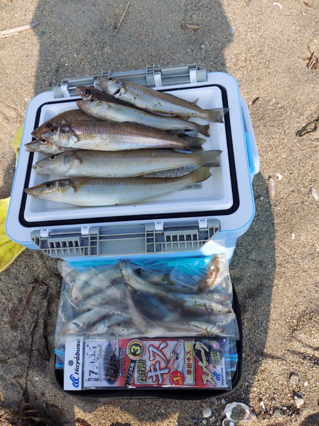 その後明るくなってもアタリは止まらず、釣れてくるキスも良型ばかり😄