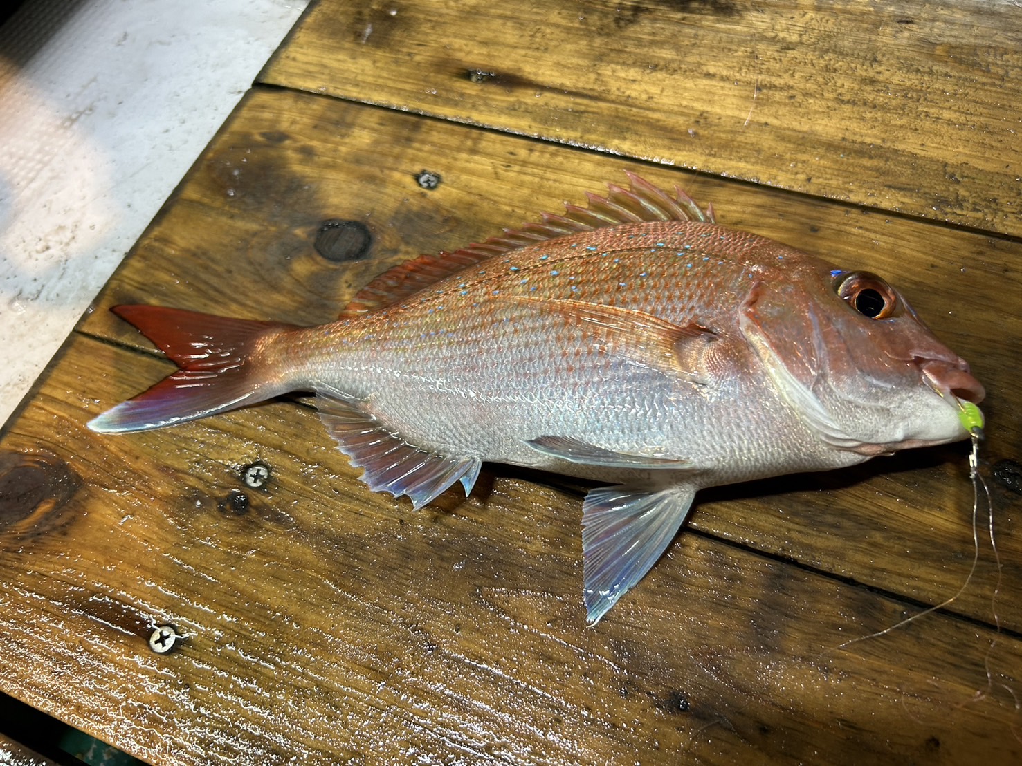 三重県大紀町錦港出船の愛海丸様にお世話になりフィッシング遊メンバーでバチコン&イカメタルに行ってきました!ポイントに到着してクレイジーオーシャンのメタラー25号をセット!!水深は50メーター!最初は45メーター付近からさぐっていくと43メーターであたりがありもう一度同じ棚にあわせて誘うとヒット!!あたりが暗くなりフィッシング遊メンバーも次々にヒットさせ大盛り上がり!暗くなるにつれて棚も浅くなり連発しました。残り20分でバチコンに変えてみるとアジが連発!食べごろサイズの鯛も釣れたので大満足の釣行となりました!!