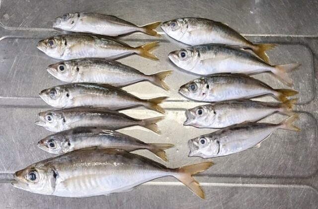 仕事終わりから釣り場に向かい 今シーズン初の霞埠頭に8時半到着して投げてみるとすぐに1匹2匹と釣れるので一安心、しかしココから地味な展開になりポツリポツリと追加するのがやっとの状況。少し深場を探ると少し釣れ具合が上向くもハゼのサイズが小さいのでなかなか掛からず苦戦、ただキビレ小が6-7匹と釣れて困ります。針もキスの6号を使っていてハゼの掛かりが悪いのでアジ探しにシフトすることに、釣れたハゼは20匹ちょっとでした。移動した先は四日市でアジを探してみると 小型のアジがポンポンと釣れて居なくなり場所を動きながら探すと居ました!同じ場所で飽きない程度にアタリもあり楽しめたのと1匹20㌢クラスが釣れて 同じサイズを1匹ばらしました。この時期のアジは引きも強くイイのですが走りながら咥えるので掛けにくいですね。12匹釣って昼間の釣りの為に移動の為一晩目の釣りは12時過ぎに終了です。