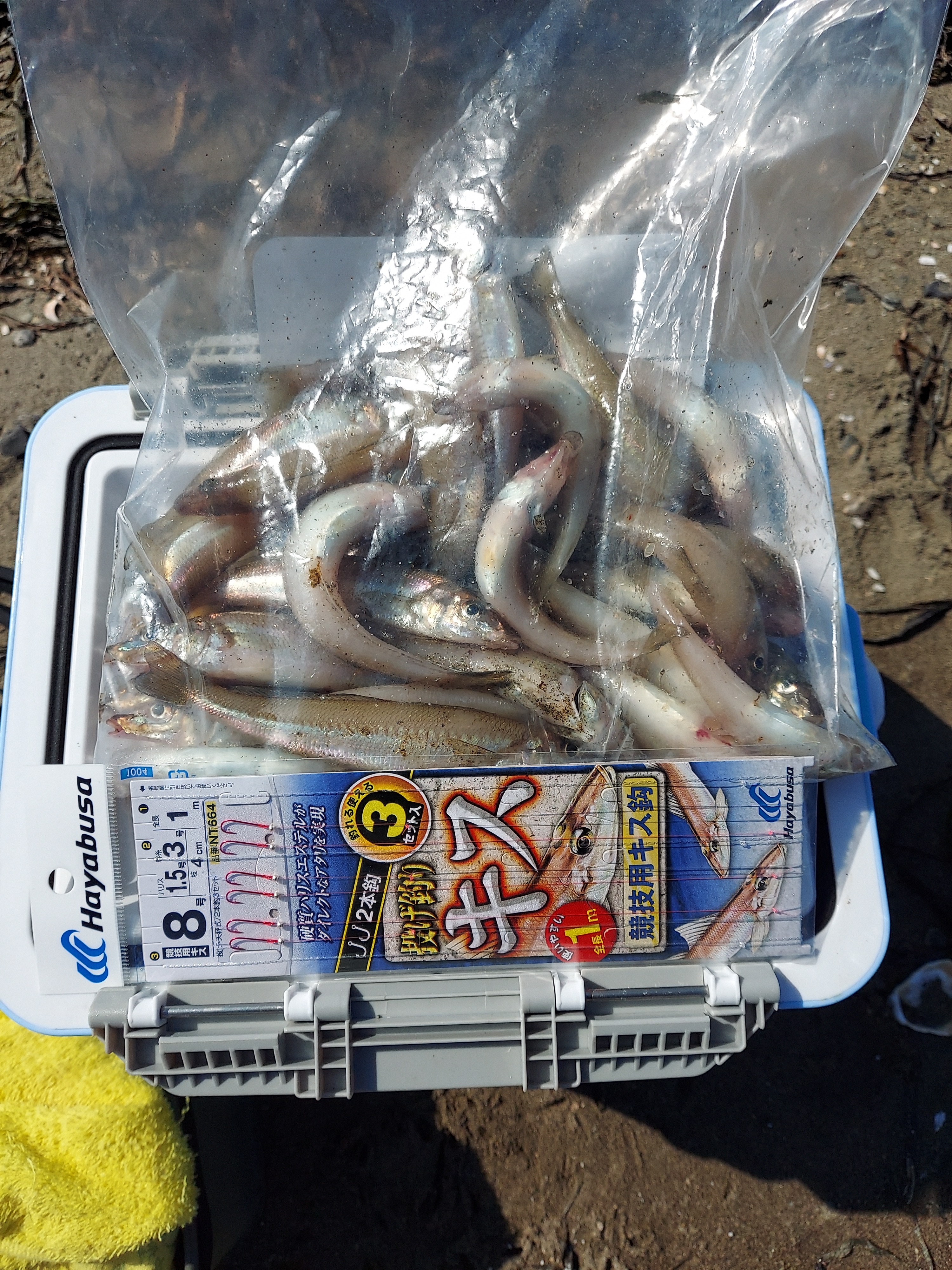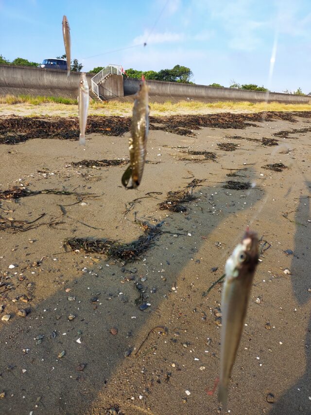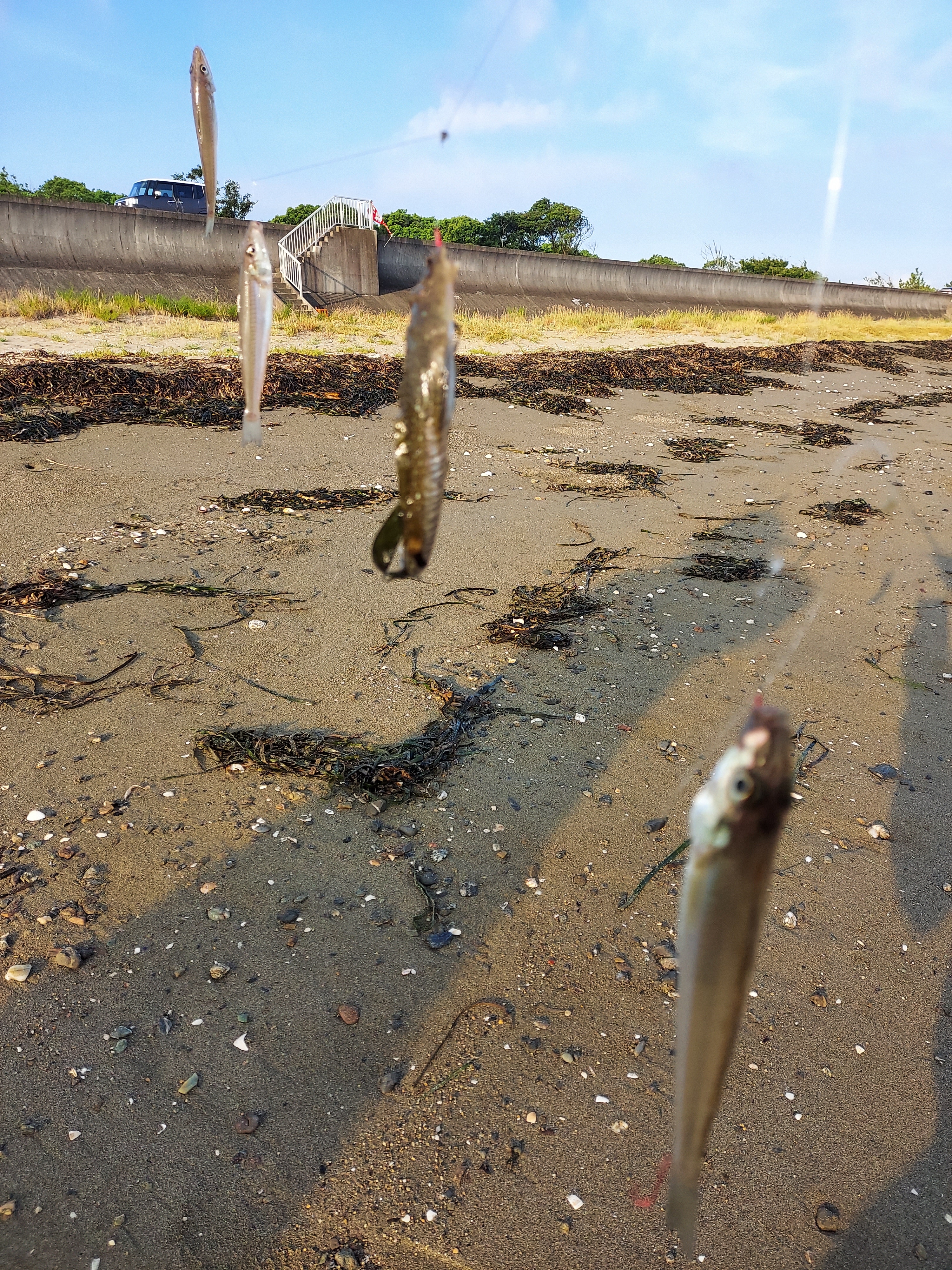 エサ付けの手間やら何かと面倒ですが、キスが何匹も連なって上がってくるのは気持ちいい😄