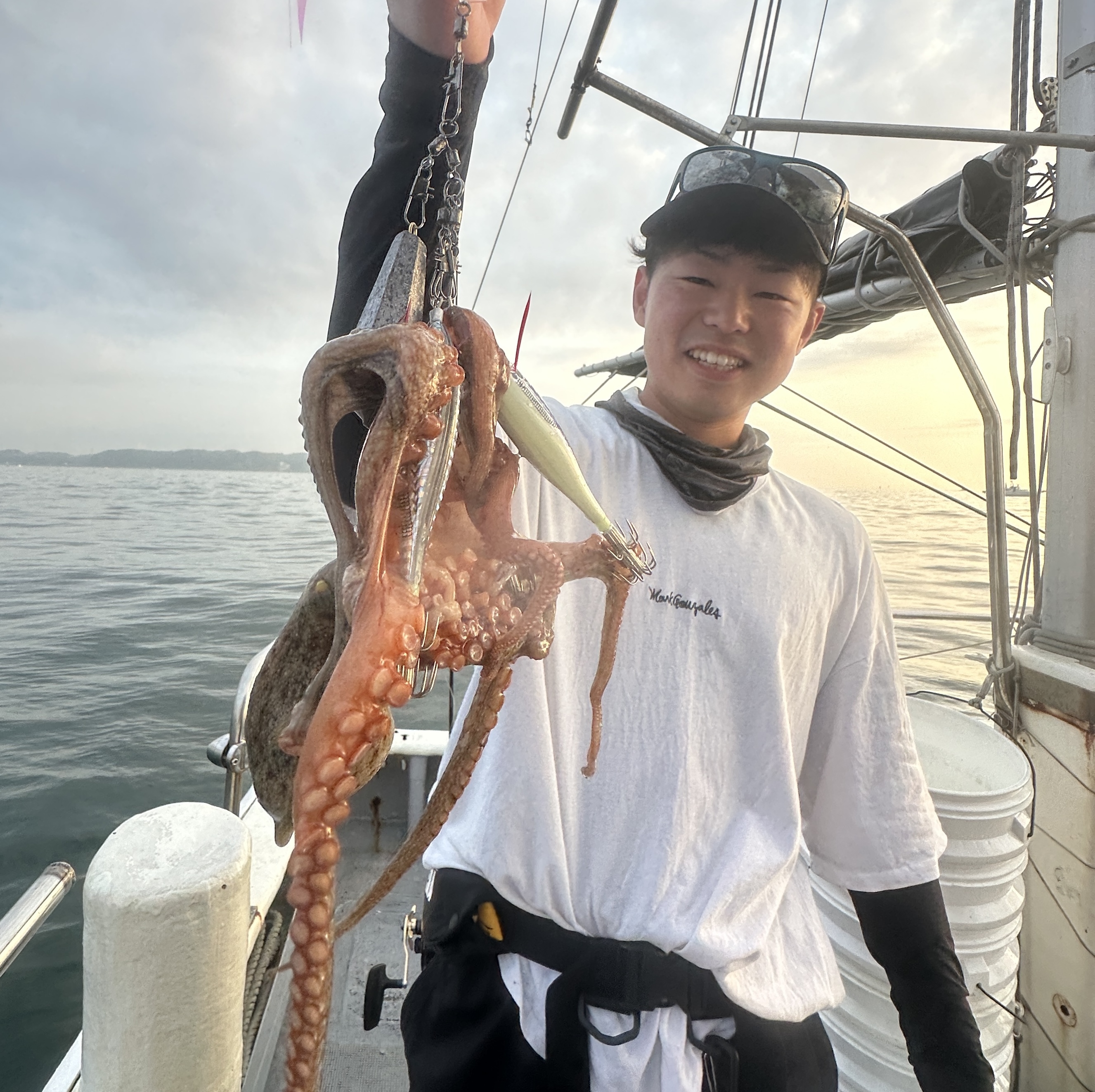知柄漁港出船の銀狼丸さんにお世話になり、タコを狙ってきました!ポイントは知多半島沖の砂地でオモリは40〜60号を使用。