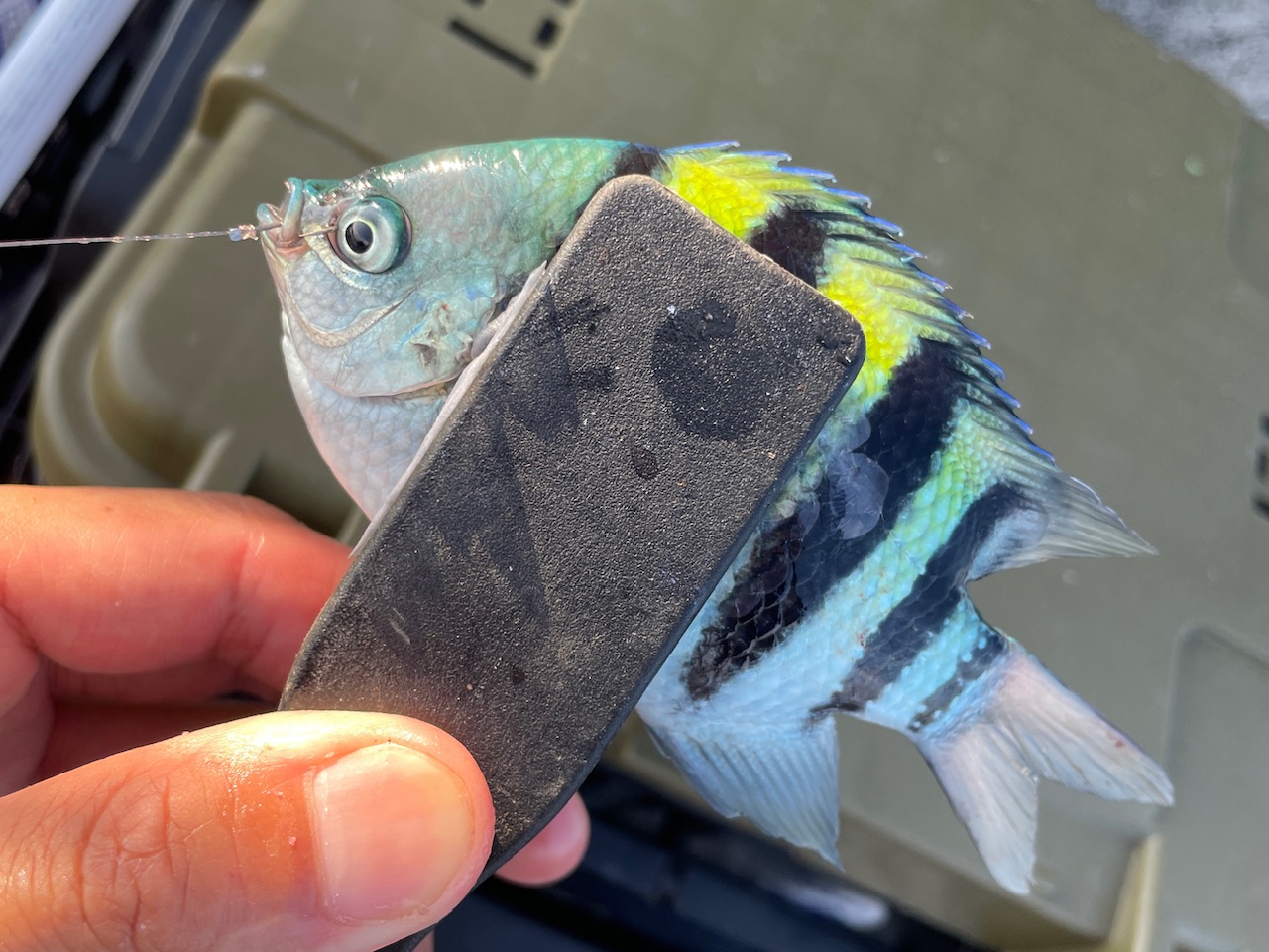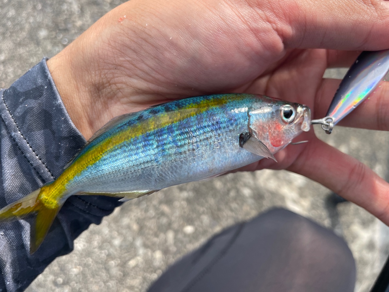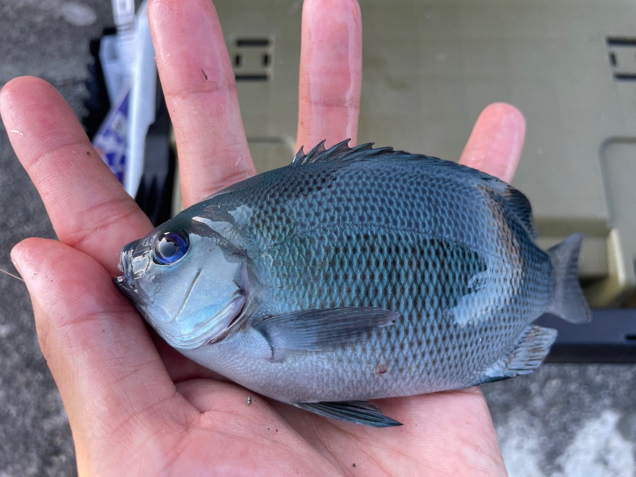 朝一はジグサビキで下がっていくとカマスやアジが釣れてくれました。その後足元を見てみると45cmくらいのグレが泳いでいる。撒き餌を巻きながら寄せてエサを投入するも釣れるのは15cmくらいのコッパグレ。コッパグレが多すぎて巨大グレの層に餌が到達しない。。。あの手この手を使ってみたが結局釣れず。グレを狙っている間に青物のナブラがあったが、『二兎追う者は一兎も得ず』ということでグレに集中していたせいか完全に時合いをのがし結局一兎しか追っていないのに一兎も得られませんでした。その代わりにベラやアカハタ、タカベなど色々な魚が釣れました。南伊勢は外道の種類が豊富なので本命が釣れなくても面白いです✨