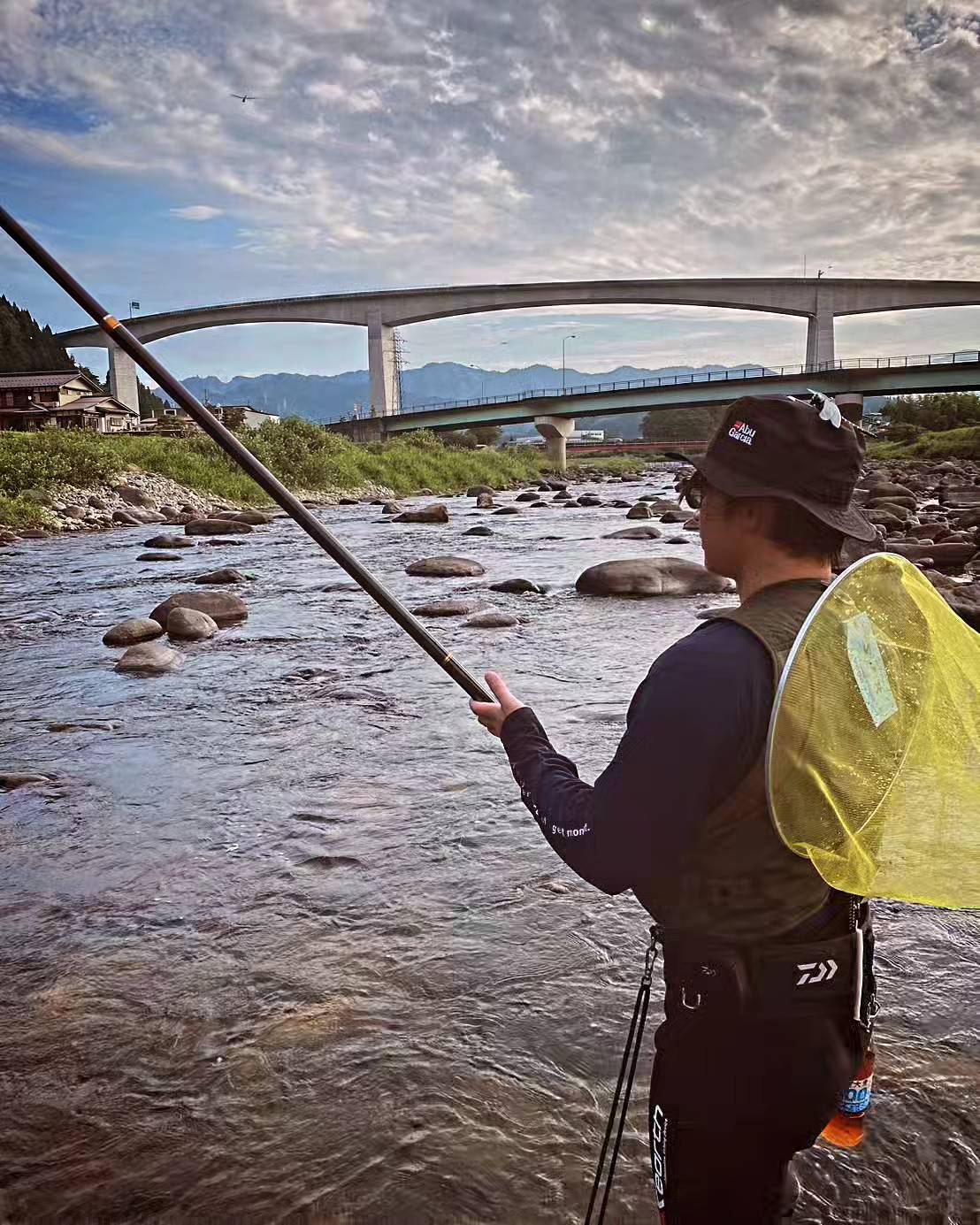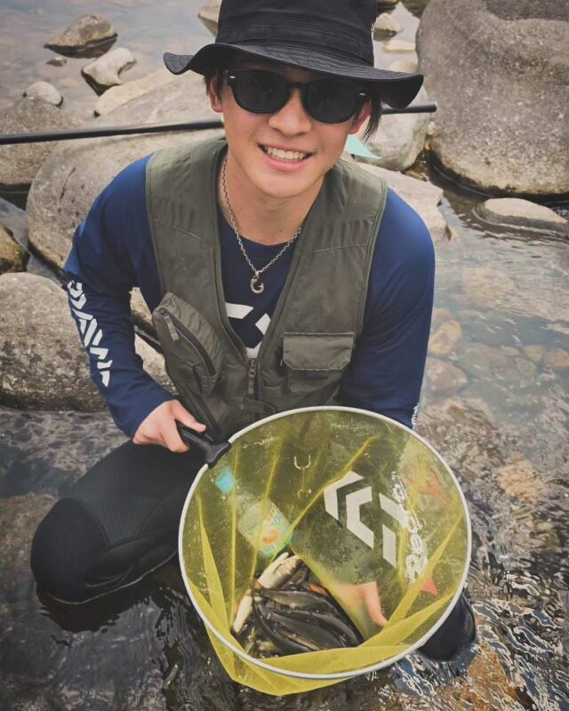 初めての鮎釣りに挑戦してきました!!以前から鮎をやっている人からはめちゃくちゃ面白い!といわれていたので実際にやってみたくなり今年からデビュー!名古屋南店の副店長にご指導いただき、泳がせを教えて頂きました!実際に活きたアユを思い通りに操作する難しさを痛感。天然が掛かるまで一苦労。やっと一匹目を掛けオトリを養殖から変えるとさっきとは動きが全く違う!!こんなに違うんだなと思っているとすぐに掛かってくれました。そこからは作法などを確認しながら午前中で終了。何とか15匹釣ることが出来ました。使用した竿は入門向けのダイワ・アバンサー早瀬抜90十分楽しむことが出来ました。最後は皮を眺めながらBBQ!良い締めになりました。
