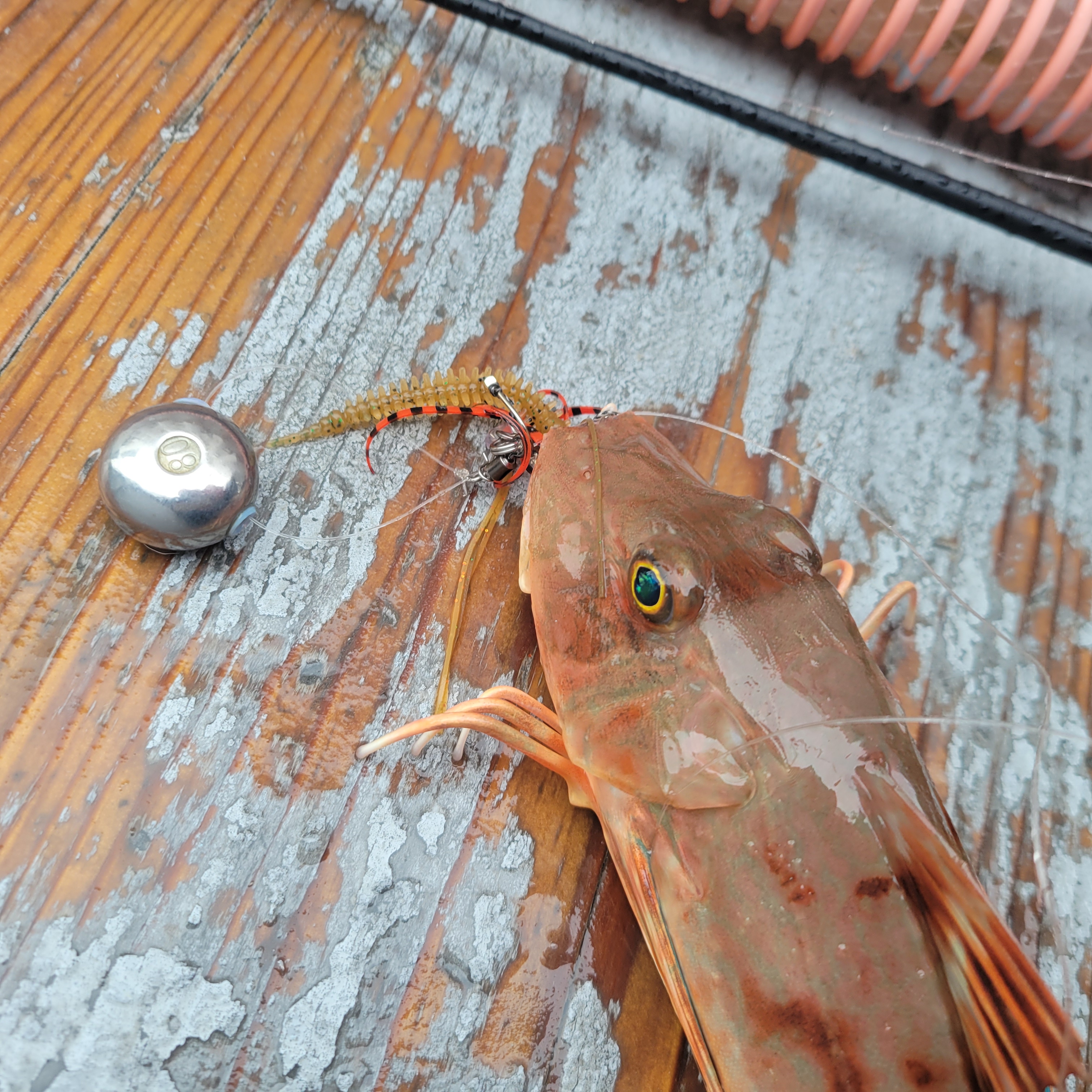 師崎のラッシュ様にお世話になりタイラバゲームを楽しんできました。ポイントは港出て直ぐの水深15m~40mのポイントでヘッドは45g~80gを水深と潮の流れに合わせて使用しました。ユニットはCrazyOcean カチッとタイラバユニットに海毛虫の鉄板組み合わせ!いつも裏切らない釣果を出してくれます!ロッドは現在テスト中のNEWタナロアタイラバ フルソリバージョンを使用!順調に仕上がってきてますのでまた改めて報告していきますね!この日の私のヒットパターンはダイワ ソルティガICのスピード3~4でのヒットがほとんどでそれよりもスローにすると小型のバイトだけでフッキングに持ち込めませんでした。早めのスピードで追わせて喰わせた方がヒット率は高かったです。このパターンで42cmと他リリースサイズ含め4匹キャッチする事ができました。少しのユニットの違いと巻きスピードで釣果に差が出るタイラバゲームは止められません!