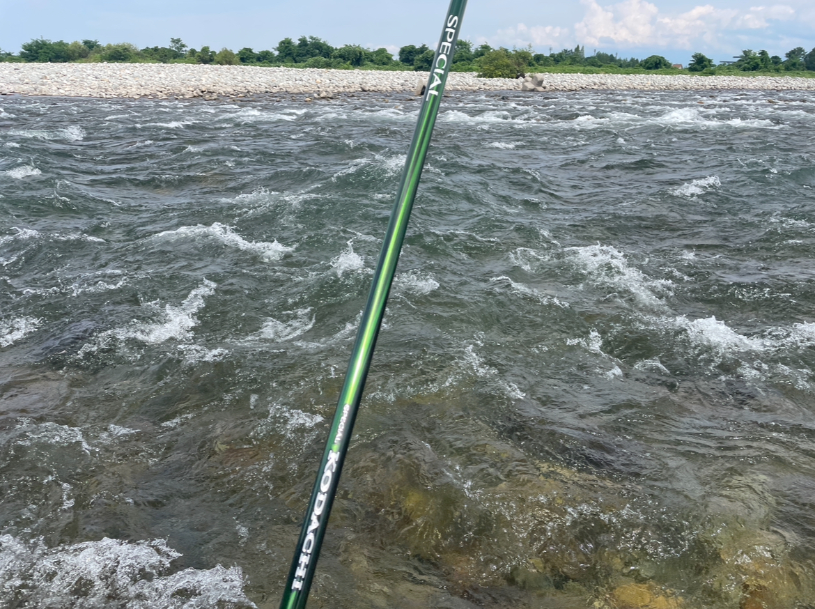 9時頃おとりやさんのフィッシング吉井青島店でおとりを買い、9時半頃に新保橋上流で開始しました。駐車場の前が50m程の瀬になっているので、やってみました。サイズが全体的に小さいですがたまに良いサイズの鮎が掛かります。神通川の鮎はサイズの割に掛かったら泳ぎ回るので面白い!14時までで31匹釣り、今度は新婦橋の下流側に入川。新婦橋では先日の当店店長三浦の釣果がおとりやさんでアップされていた為かすごい人!延々下流に下り、いい感じの瀬があったのでやってみました。トロい瀬片を通すとポツポツ掛かりますが小さい。右岸側から1人やっていたので、私は左岸側の瀬をやってみると竿抜けだったのか良いサイズの鮎が掛かります。ここでもいい引きを味わい楽しめました♪17時までやり、新婦で22匹。計53匹と楽しむ事が出来ました!