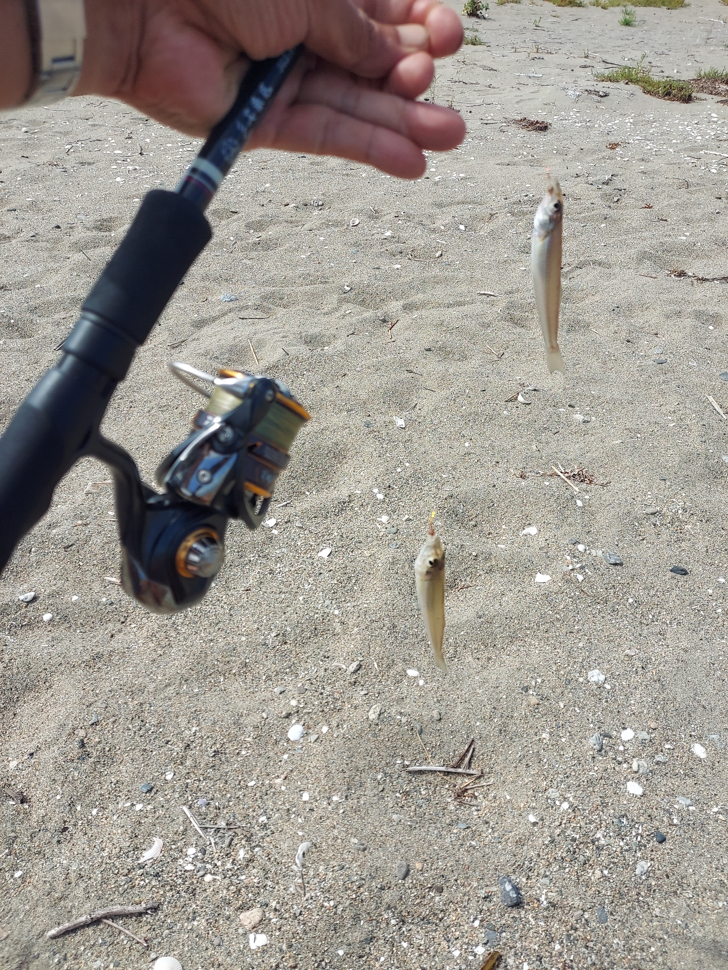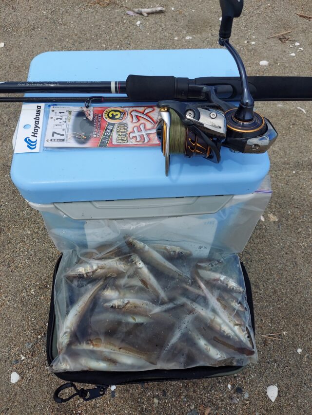 さっそくアタリが出たので、そのままゆっくりと巻いてきますが2回目のアタリは無く先ずはキス1匹ゲット✌️