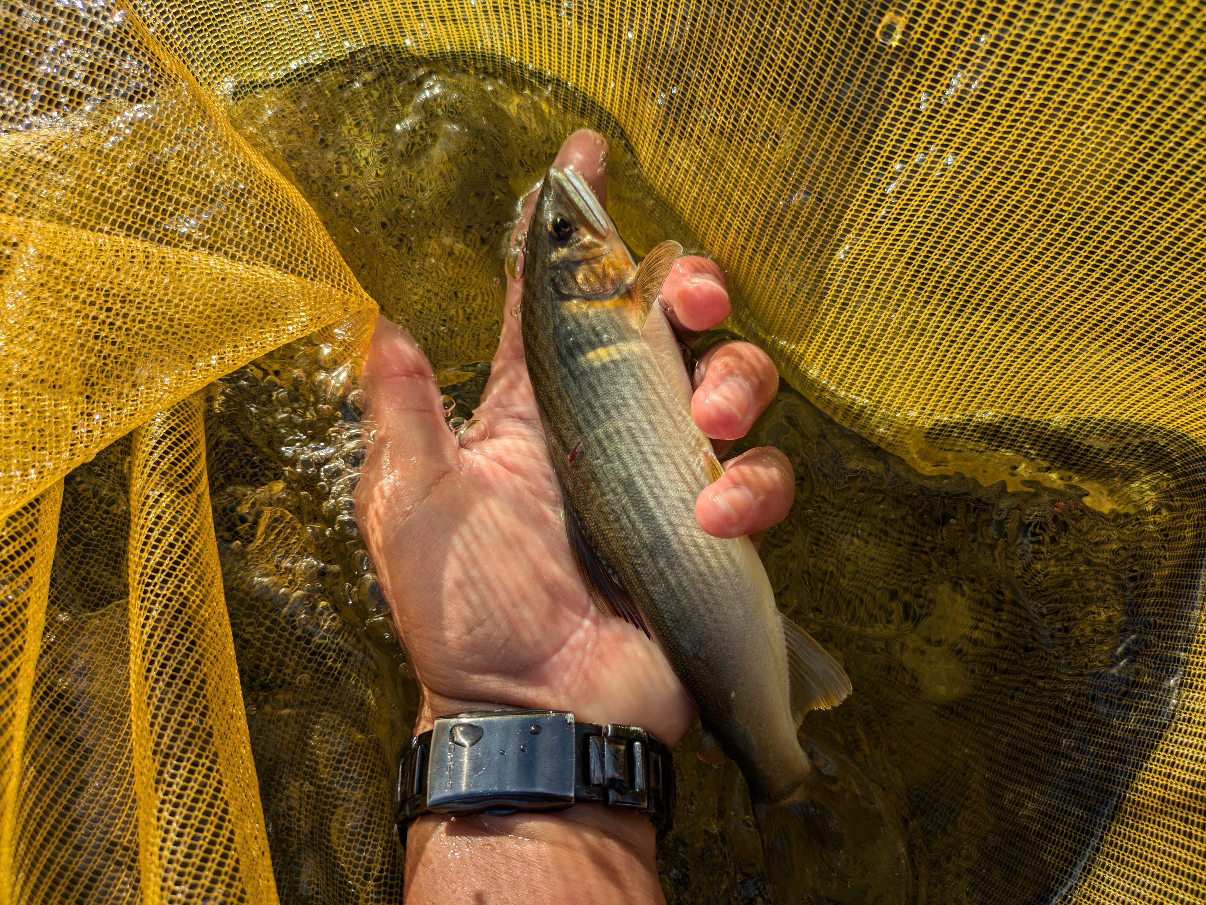FLDの尾崎チーフに誘っていただき初めての九頭竜川へ鮎釣りに行ってきました!坂東島~釜淵までうを1日通して探っていきました。朝8時半ころから開始して5分くらいですぐかかるものの。ポロリ。今回教訓したのは、自分の持っていた針が細軸のものばかりで、掛かりが浅く。ばれているようでした。大鮎要R8~8.5号クラスのしっかりしたものを次回は準備していきたいと思います。それでも数がいるようで反応するところはずっと釣れ続きました。結果今回釣った数くらいばらしながら、抜き18匹でした。水量のある河川は鮎の引きがトルクフルでたまらなかったです。機械を作り、』改めて挑戦してみたいと思います。