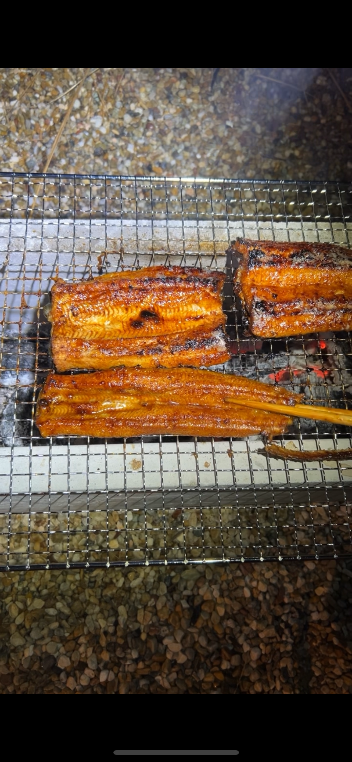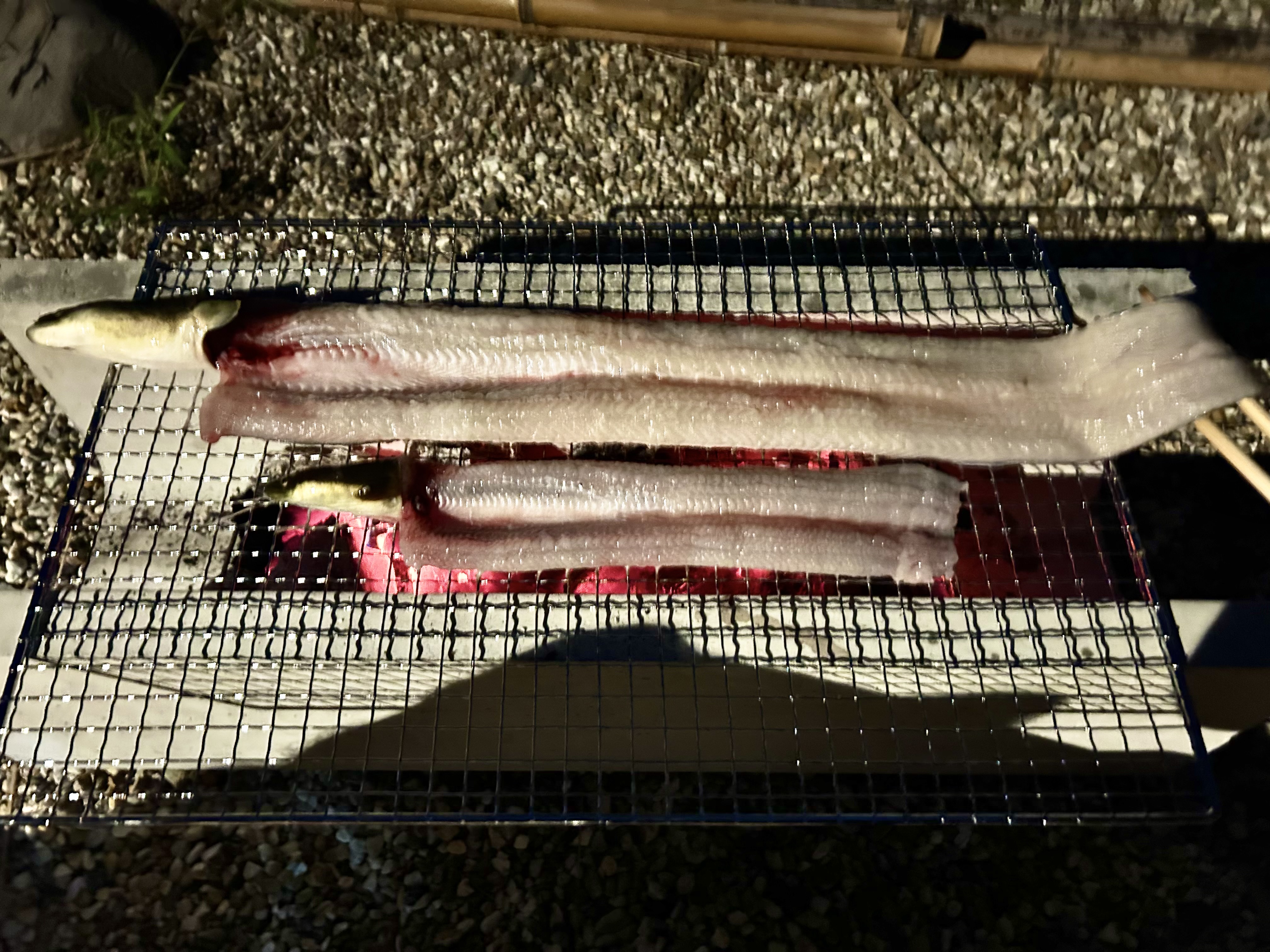 後日、泥抜き後に捌いて炭火で焼き蒲焼にしました!!ここまで大きいと食べ応えがあってとてもおいしかったです!!