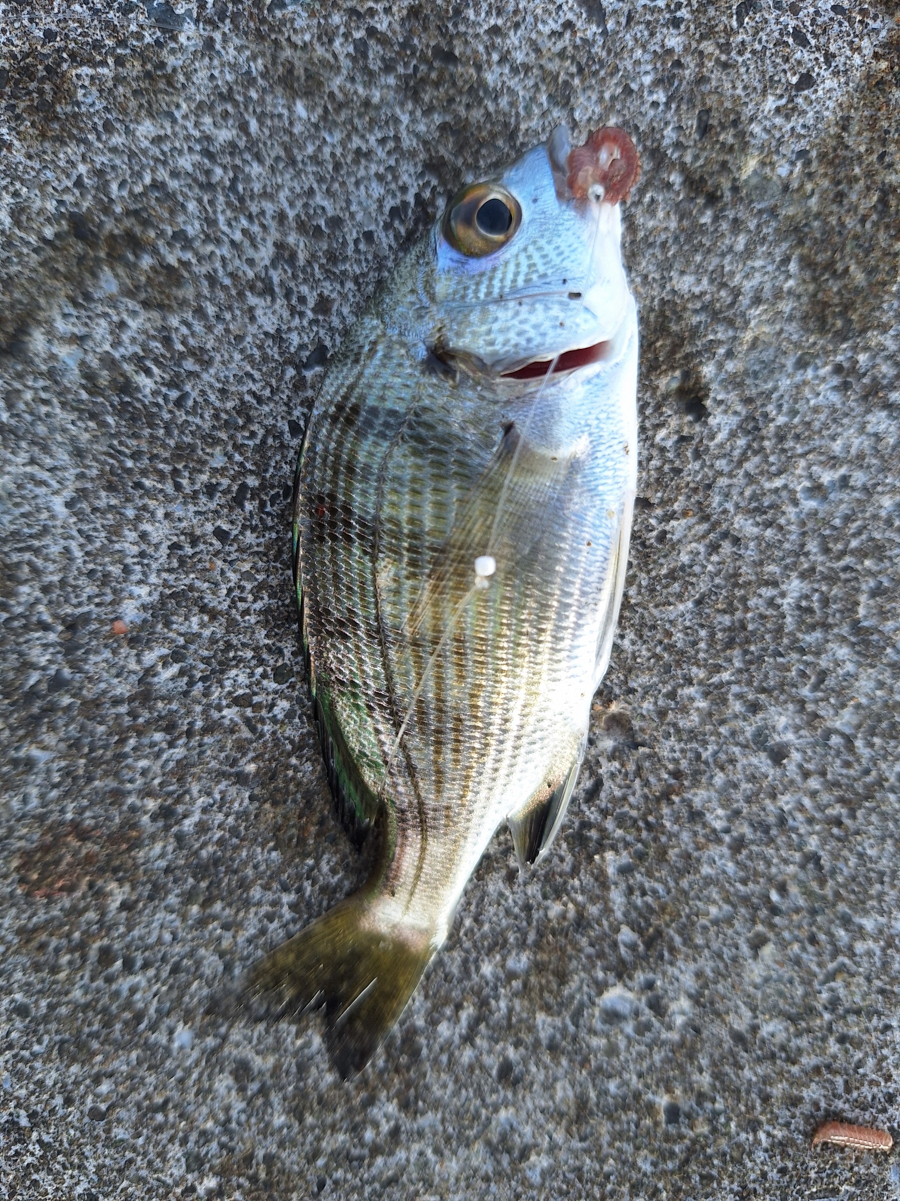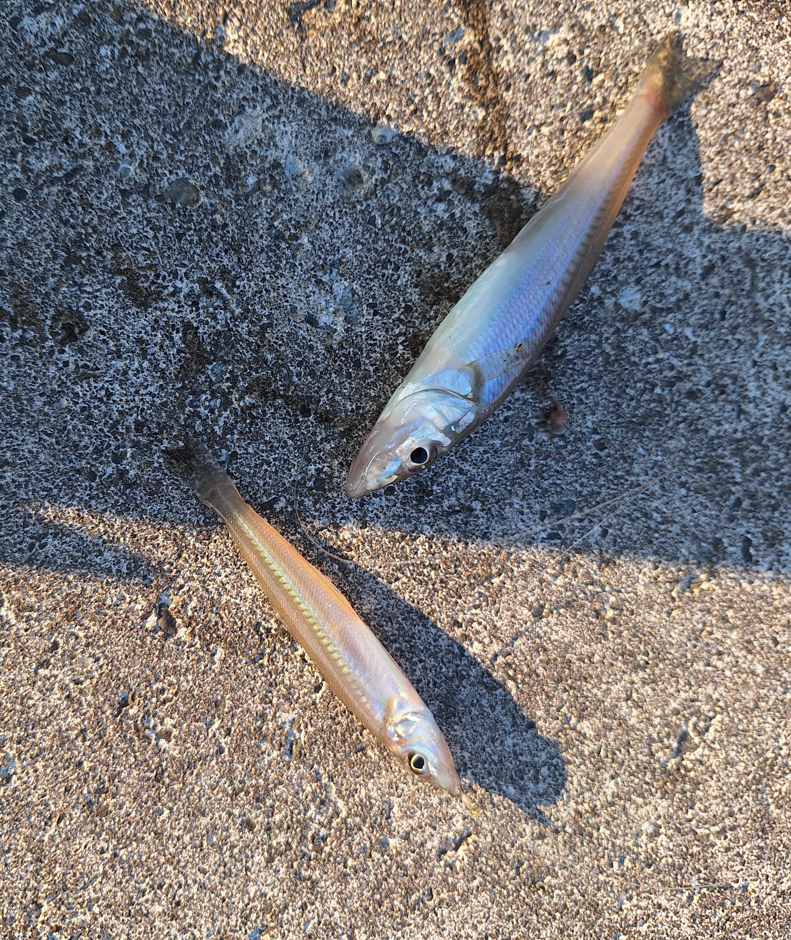 9月に入り朝も涼しくなって来ましたが、昼間はまだ30℃を越える日も。。日の出を見ながらポイントに到着。土曜日と言うこともあり既に7人ほどが投げて見えました。空いているポイントに入り、投げるがアタリがなくエサが残っている状態。この日は8時に満潮だったのでまだ上げて来る状態でした。もしかしたらと思い近いポイントを狙うとアタリ!引ったくる用なアタリではなくキスの優しいコンコンとプルプルが来ました。糸を巻き上げて来ると中型のキス。エサを付け替えて再度投入。早速アタリがあるも、イヤ何か違うぞ?キスとキビレが釣れました。ピンギスも混ざりながらキスは10匹ほど釣れました、その他はキビレ、ヘダイ、メゴチ、フグでした。遠くのポイントでもキスは釣れましたが近いポイントの方が型は良かったです。8:00に満潮だったので8:30には竿をたたみました。潮止まり前にはキスは当たらず、釣れて来るのは外道ばかりでした。最後に強烈なアタリが来たので上げて来るとヘダイの25cm 。真夏にはキスしか釣れなかったのに?海中の季節も秋に向かっているようでした。