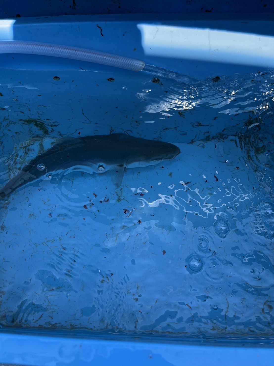 朝イチすぐにベイトが付き、根掛かりしないように底から2m前後浮かせて待っていると、ベイトが暴れ出しました!穂先が入り、アワセを入れるとヒット!ハマチダブルヒットです!!