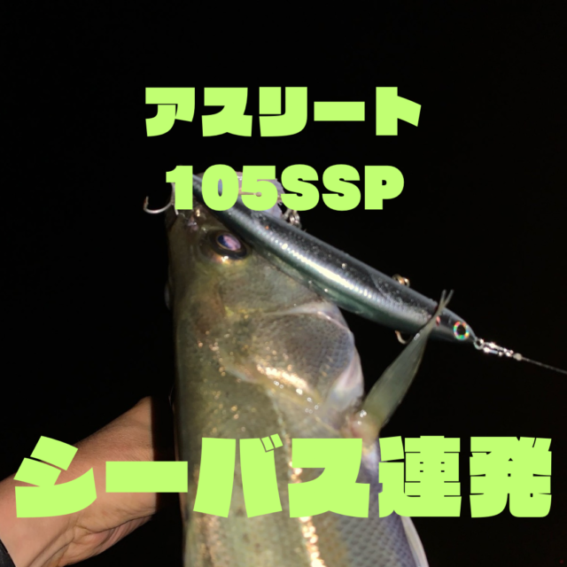 三河湾へシーバス釣りに行きました。今回も上から探るのにラビットを使用。1投目ギリギリ水中に入るくらいのスピードで巻いているとヒット。55cmくらいのシーバス。今日も1投目から釣れるなんて運が良い。その後はアスリート105SSPを遠投してロッドを立てて水面直下を引くとヒット。40cmくらいの小型でした。その後も同じパターンで30cmくらいのセイゴをキャッチして終了しました。