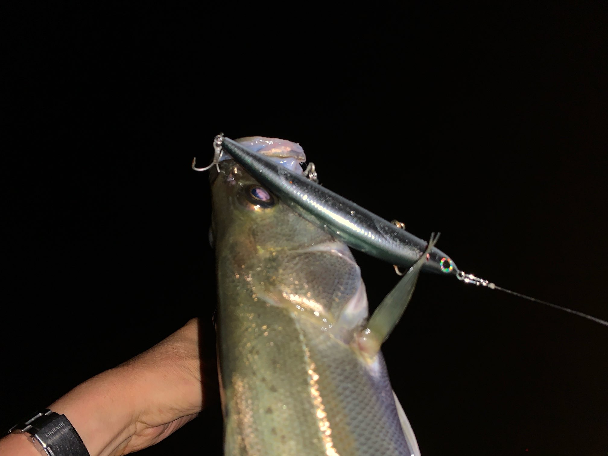 三河湾シーバス水面直下で連発