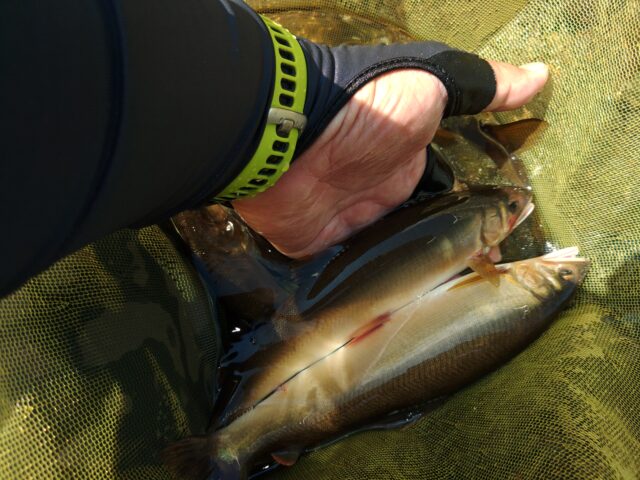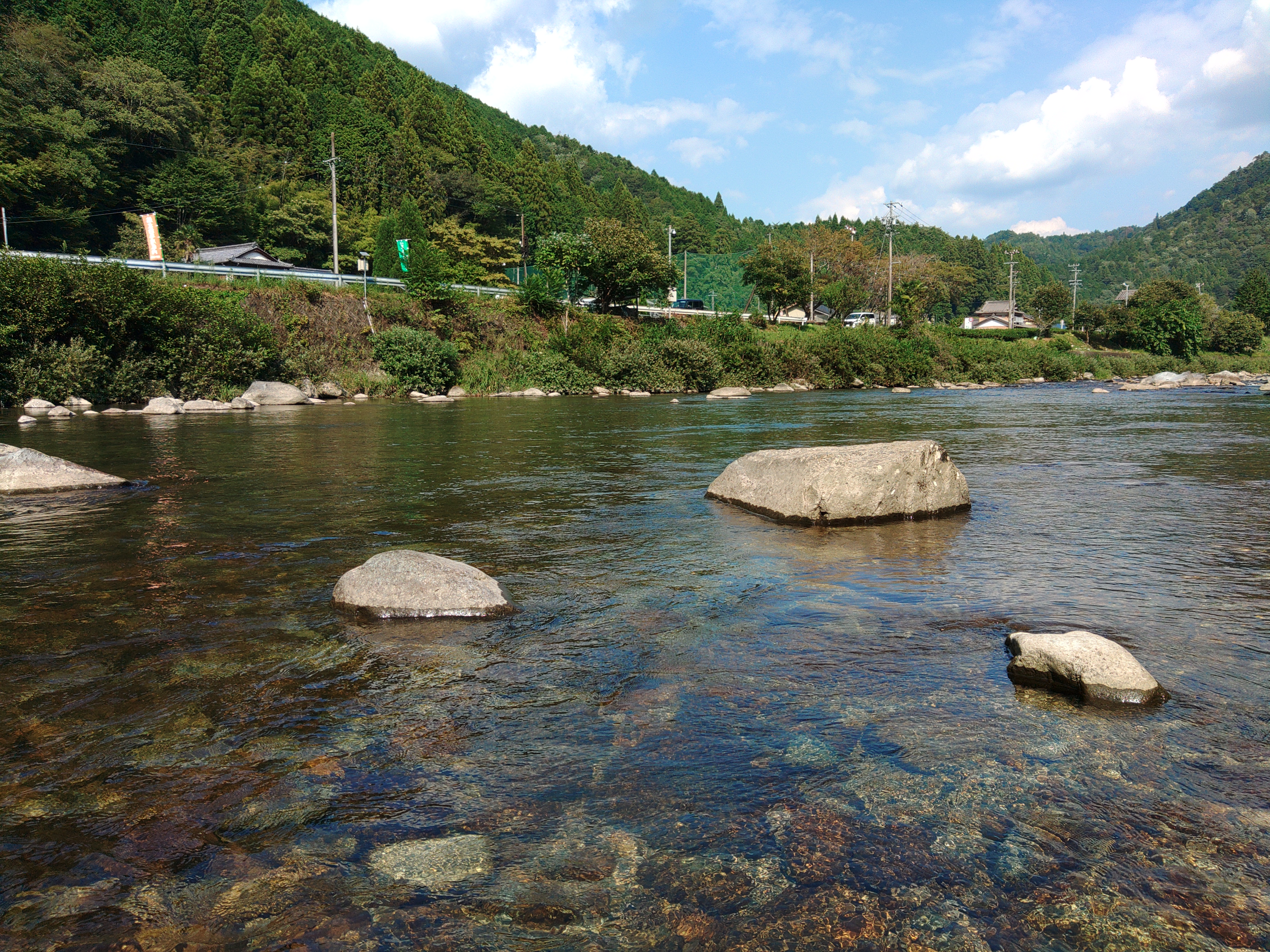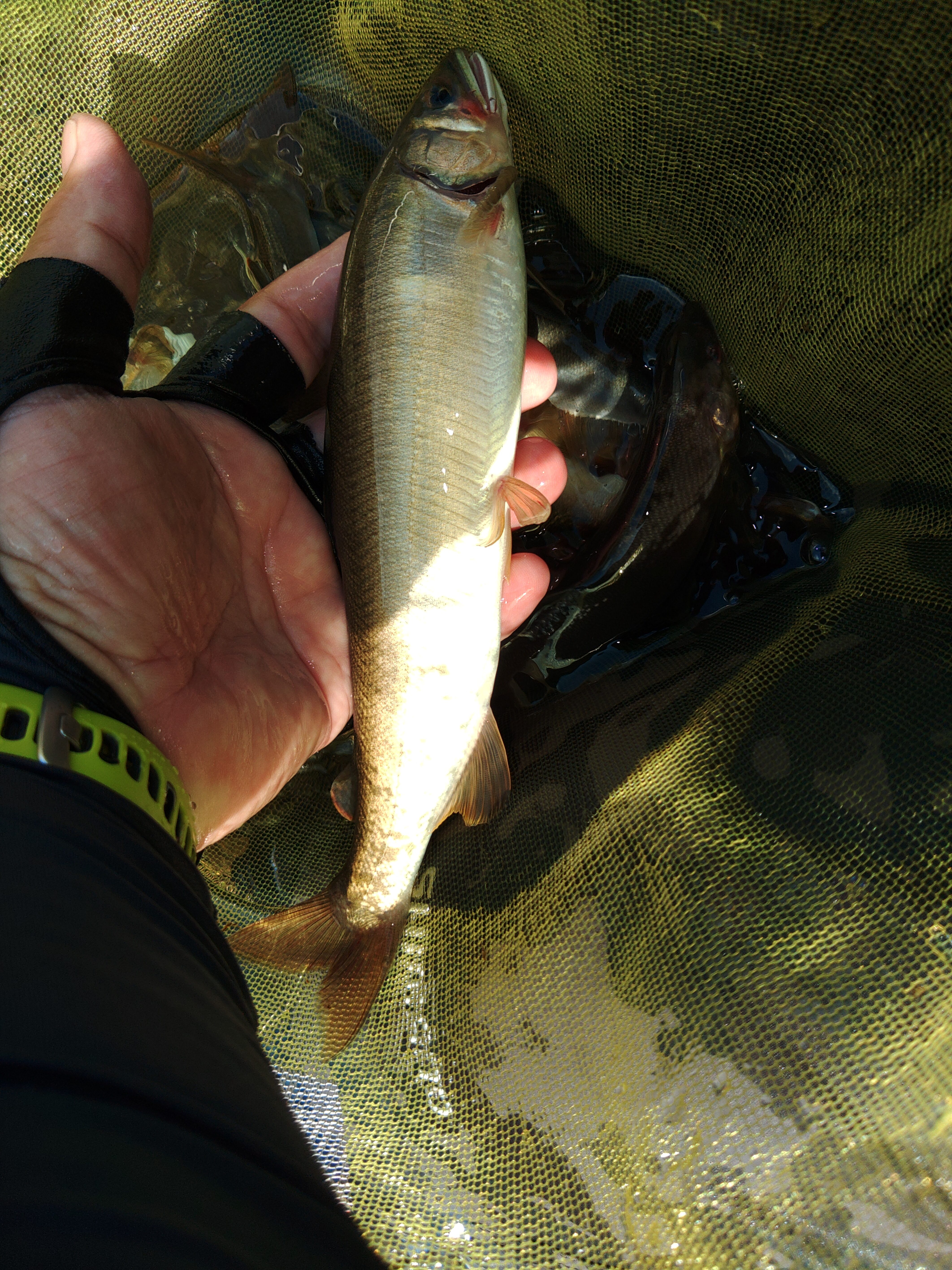 今回、白川に釣行してきました。 週末なせいかどこも釣り人が多く、通称牛舎裏が空いていたのでそこに入川しました。 とりあえず上流の瀬肩で泳がせましたが反応が無いので瀬に突入! しかし、瀬の反応もないので更に上流の際際を引き釣りしているとようやく24cmクラスの鮎が掛かりました。 その後それをおとりに釣りしているとすぐに良型がヒット! 川を引きずり回され釣り上げると26㎝の良型! その後はポイントを下流の中川橋に移動。 トロ場を見ると鮎の群れがギラギラといっぱい! すぐにトロ場を泳がすと目の前の岩で入れ掛かり、いきなり26㎝がヒット! その後は20~24cmを4匹追加してPM2:00に納竿しました。 トータル20~26㎝ 7匹 数は少ないがデカ鮎ばかりで面白かったです!