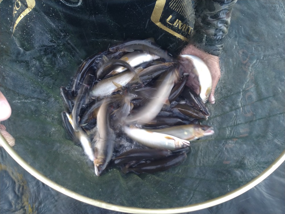 こんにちは~焼津街道店の三浦です。9月10日に福井県九頭竜川中部へ鮎釣りに行ってきました。当日は朝3時30分に出発し、オトリ屋さんに7時過ぎに到着、オトリを購入しいつものポイント釜淵へ。到着すると先行者は1人のみ、急いで準備して7時40分頃から釣り開始。当日は当店の新田君と2人での釣行。比較的サイズのよい左岸の流れを上下に分かれて釣っていきます。私は上流側に入り釣り下ると今シーズン最大サイズの26㎝。その後もポツポツ掛かり午前中で25匹。昼食後は朝釣った流れを釣り下るもペースが遅いので、右岸側へ移動し上流から釣り下っていきます。左岸のよりもサイズは落ちるもペースUP、17時40分まで楽しみ27匹追加して52匹の釣果でした。サイズは16㎝~26㎝まで平均はサイズも20㎝を超えています。鮎も婚姻色が出ている魚も増えてきましたが、しばらくは釣れそうですよ。