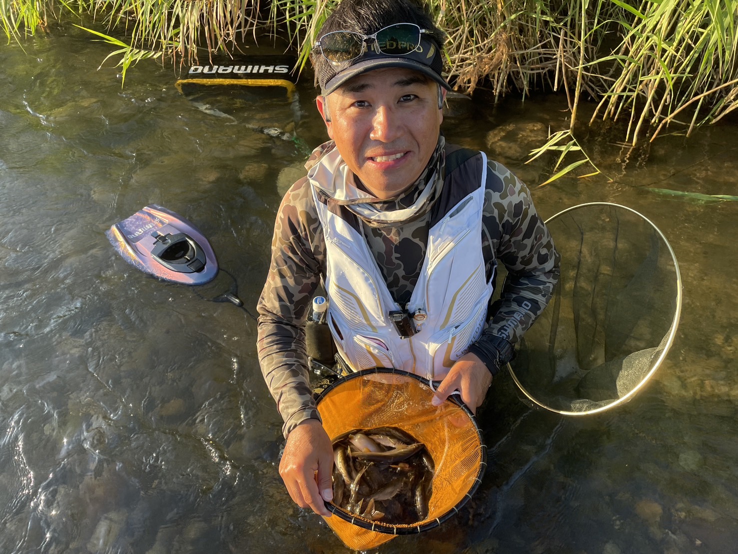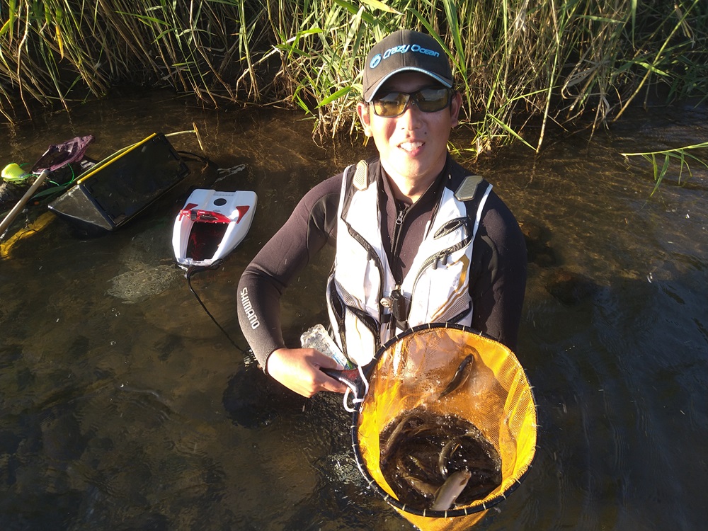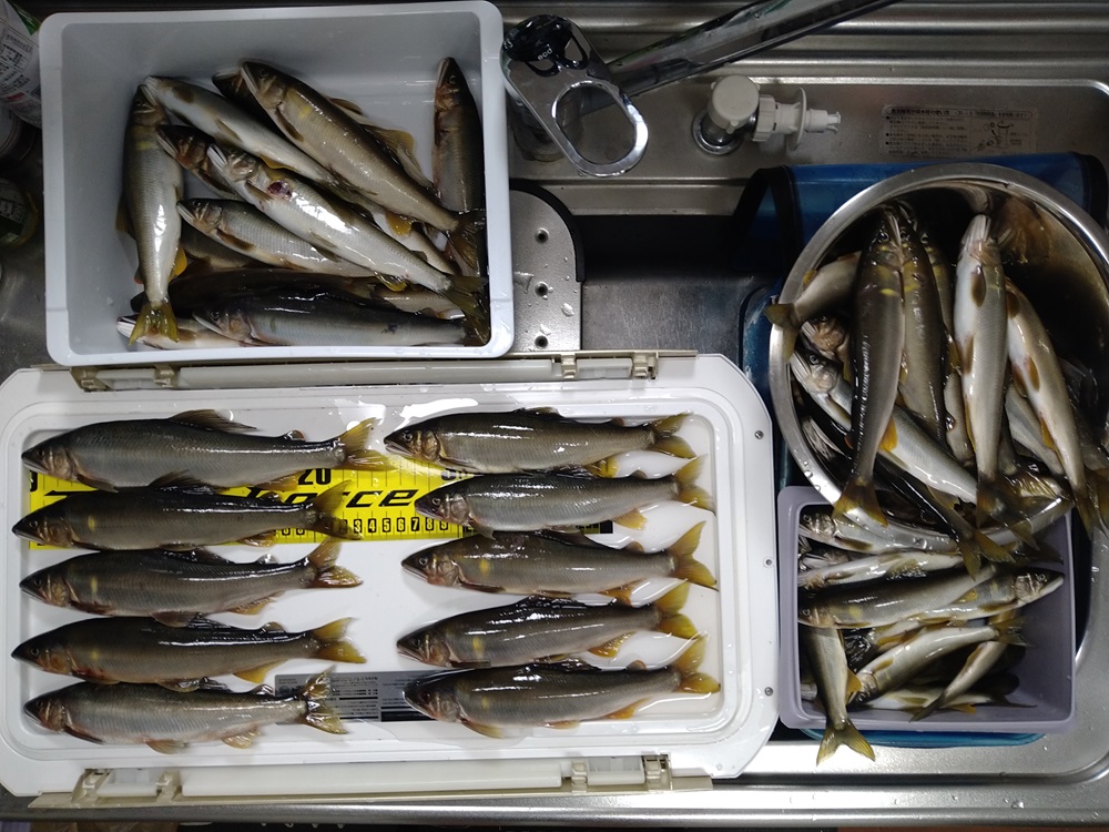 こんにちは~焼津街道店の三浦です。9月11日に九頭竜川中部へ鮎釣りに行ってきました。当日は朝7時30分に宿を出発し、オトリ屋さんには8時過ぎに到着。前日預けたオトリ缶を回収し2日目は坂東島へ。中州の上流から釣り下る予定でしたが、人が多くかなり大回りをしなければ行けなかった為、中州の下流側から入川。誰もおらず新田君と貸し切りかと思いましたが、15分もすると人が増え下流にしか動けない状況に。2時間程丁寧に探りましたが時速3匹と撃沈。昼休憩までに時間があったため、車に戻り少し休憩し竿を8メートルに持ち替えて浅い流れを釣るとペースUP。13時までに27匹、午後からは釜淵の少し上まで釣り下り20匹追加し16時45分に納竿しました。鮎のサイズは14㎝~23㎝まで。9月12日、13日はシマノジャパンカップの全国大会の決勝が私の大好きな九頭竜川中部で開催されます。よく釣れているので時速15匹くらいは釣ってくると思いますので、全国大会出場の猛者たちがどれくらいの釣果を出すか楽しみですね♪
