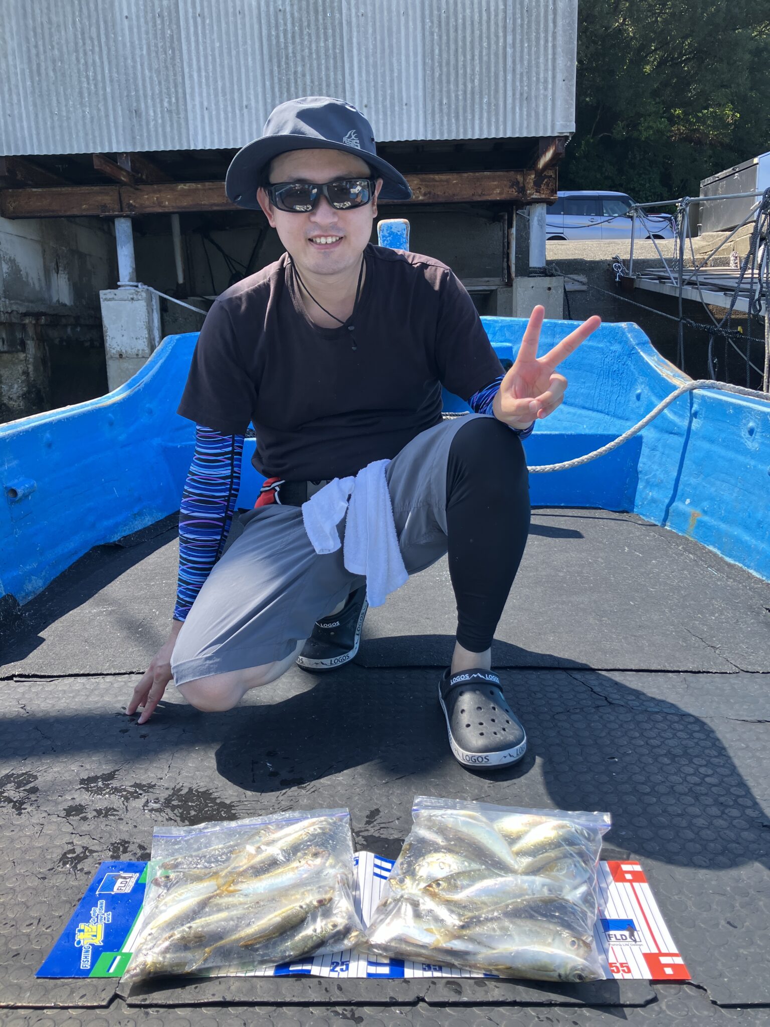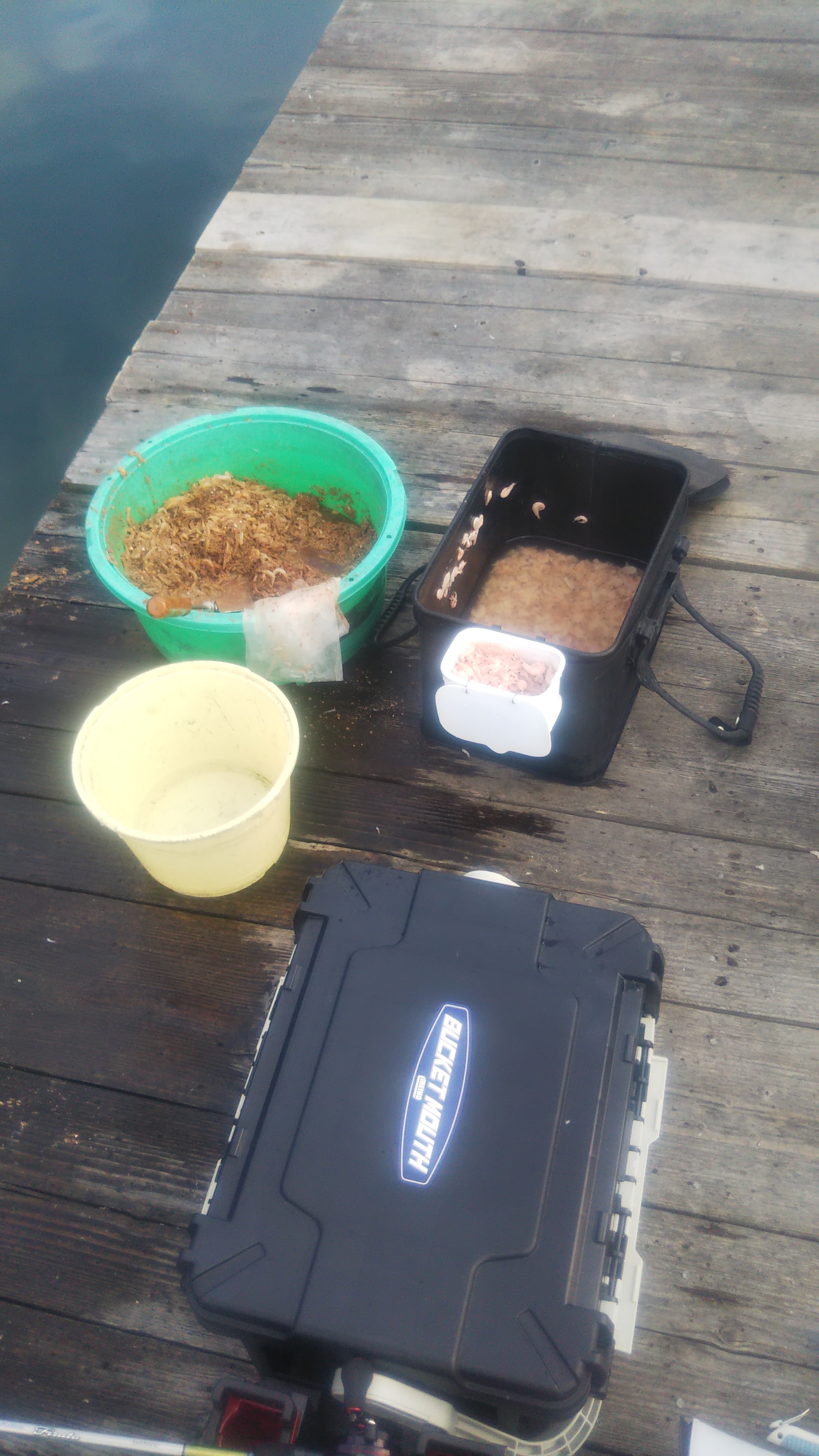 三重県鳥羽市にある海香さんの筏にいってきました。海香さんの筏では、おけや簡易トイレが備え付けられているので便利です。今回はひたすらにアジだけ狙いです。ボイルオキアミ(ボイルオキアミは画像のように水を吸わせておきます。そのままだと水に浮いて鳥のエサになります)をパラパラと撒いて様子を見ます。見える深さでサバやフグがエサをつついています。アジの様子は見えず・・・。次におけにあかまるとオキアミ3キロをまぜ、団子は握らず、少量ずつパラパラと撒く。するとアジも見える深さのところでエサを食べているのがわかった。撒き餌をして魚が寄ってきているところに針のついたエサ(ボイルオキアミ)を投入。すぐにHIT、20cmくらいのアジ。ここから撒き餌をおこたらず、釣り続け、アジの他にサバやチャリコ、アイゴなどがつれました。エサが食べられる瞬間をみながら釣れたので面白かったです。釣果は持ち帰り分のアジ50匹を超えてからは数えていませんが、もしサビキ釣りだともっとつれて一瞬でクーラーいっぱいになりそうです。アジだとサビキ釣りと思い浮かべる人が多いですが、柔らかい筏竿によるこの釣り方も魚の引きが味わえて楽しいですよ。