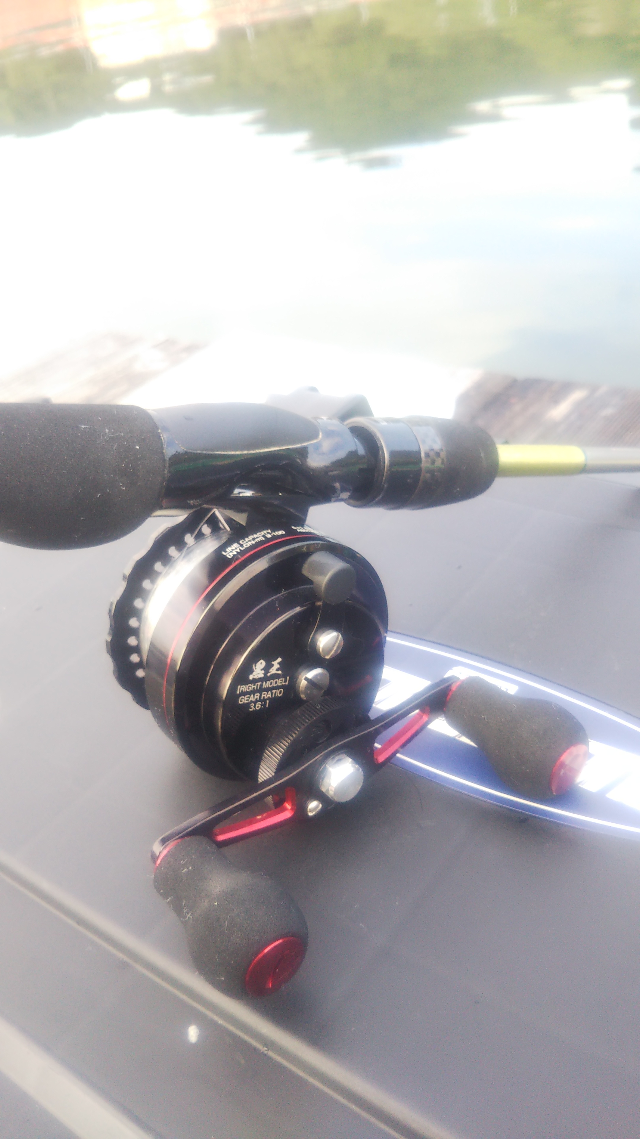 筏竿:セイハコウフィラート1.5m、リール:黒王、糸:フロロカーボン2号100m、針チヌ針3号またはグレ針7号 ガン玉5B針の上50㎝くらいのところに1つ