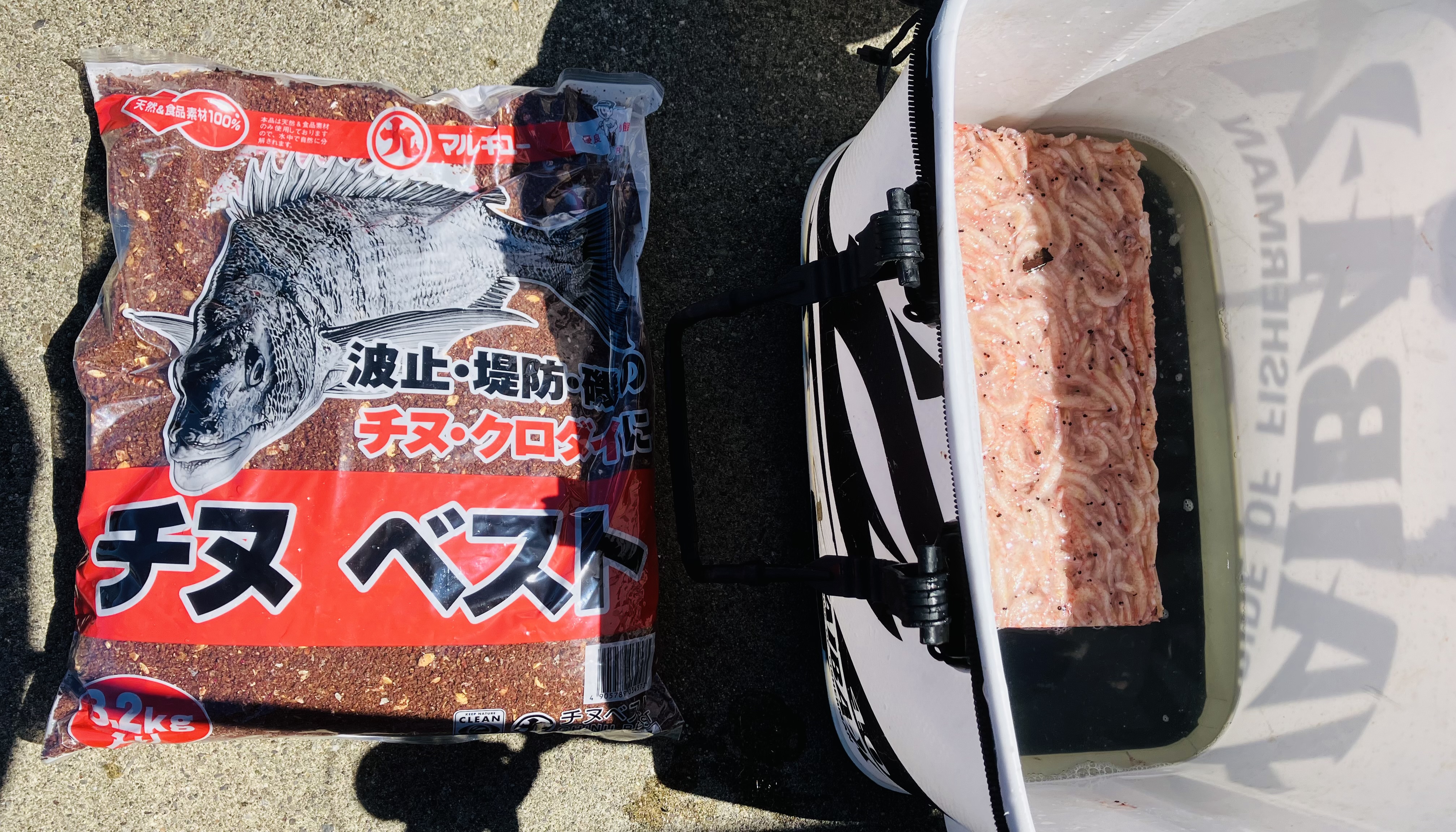 撒き餌は、マルキュー/チヌベストに生オキアミM3キロの配合。