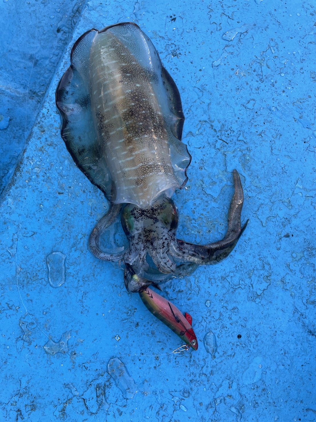 用意していたチビをまさかの全ロストしてしまったのでティップランナー3.0号で普通にティップラン。風が吹いていい感じ!真下に落とし水深に応じて3~7回しゃくってステイの1投1回収。やっぱりこのスタイルの方が好き。