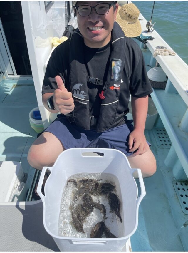今回は師崎港の武丸さんでカワハギ釣りに挑戦してきました。初乗船でしたがカワハギに熱く気さくな船長さんで楽しかったです!釣果はカワハギ12枚でワッペンサイズが多かったです。針はがまかつのAT4.5と5を使用しましたが数をのばすならもう少し小針でもよかったかもしれません。ワッペンサイズは全てリリース、武丸さんは実釣中のリリースはNGですのでご注意ください。さらに以前からアサリの代わりになるエサはないかと試していましたが、今回使用したマルキューのホヤは大正解!細切りにしたホヤは非常に使いやすく良くあたりもありました。カワハギのことなら名北店 西までお声かけください!