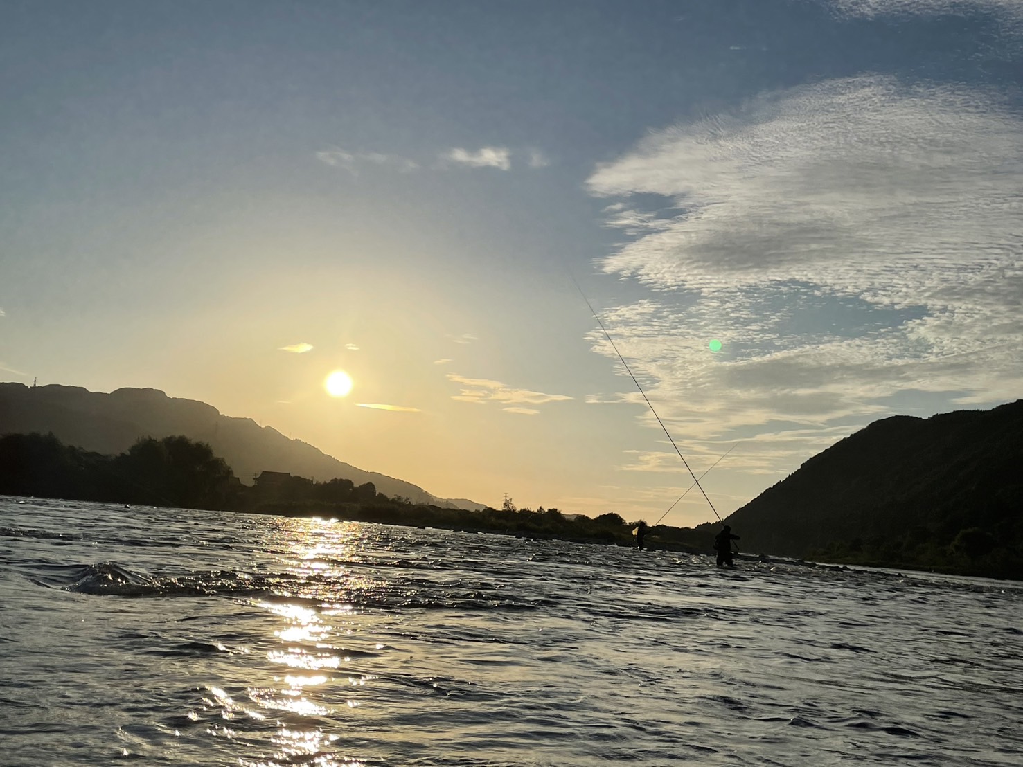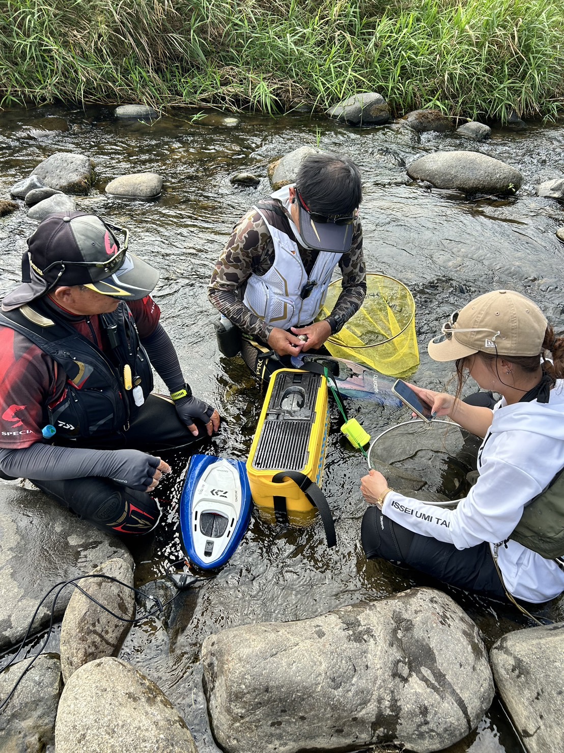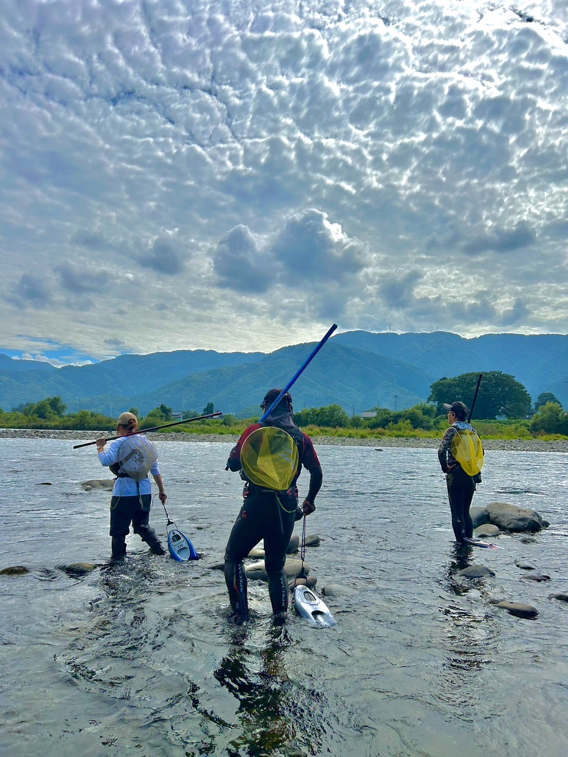今回は、長浜店長とスタッフ奈尾さんと焼津街道店のサイボーグ三浦店長とで、福井県九頭竜川の坂東島に鮎釣行! AM8:00から釣り開始。