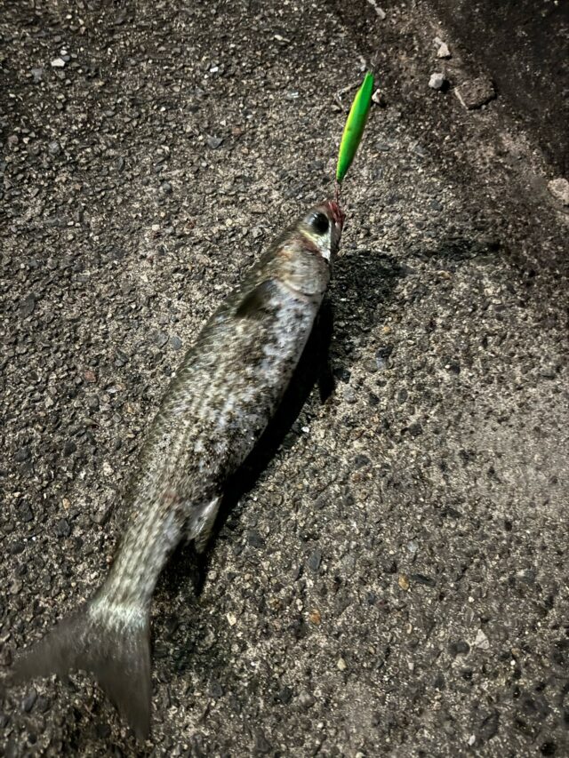 ダイワのスイッチヒッター85Sを明暗部に入った瞬間違和感があり合わせると待望のヒット!しかし上がってきたのはボラ‥この後も続けますが時間となってしまったので終了となりました!