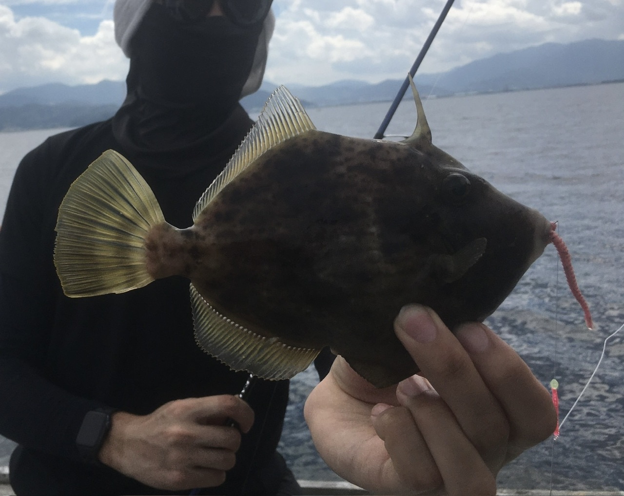 先日福井県敦賀市のやまもと旅館さんの筏へ行ってきました。乗った筏と陸との距離が近かったので朝イチはエギングから❗️水深が20mほどだったのでエギ王K3.0号 軍艦グリーンに餌木蔵 プラスシンカー 6gを追加してスタート。キャストして底をとり少し大袈裟気味にシャクり、3投目ほどでhit❗️その後もエギ王の金アジカラーとローテーションし4ハイキャッチ❗️日が上り暑くなってきたので五目釣りにチェンジ。カワハギ仕掛けにイシゴカイやオキアミ、アサリのむき身などで色々な魚を釣ることができました!何とか1枚本命のカワハギもキャッチできましたよ!まだまだ筏の上は灼熱です💦水分は沢山もっていきましょう!