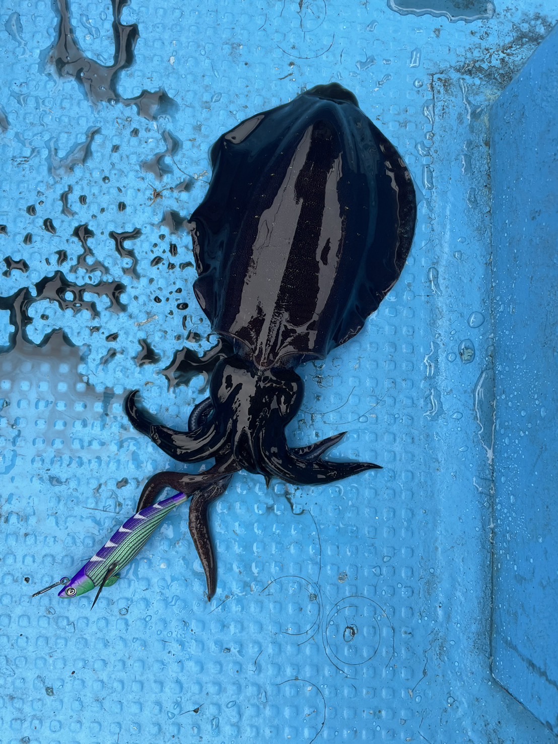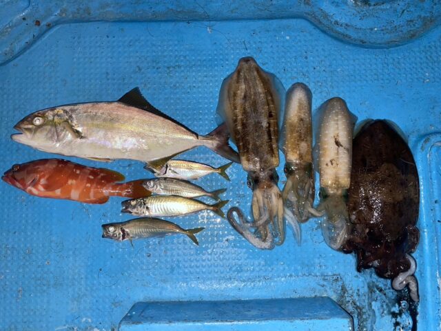 使用したエギはティップランナーチビ。絶望的に風が無かったのでキャストして狙っていきます。フリーフォールで着底させ数回しゃくってテンションフォールで着底。このパターンで3ハイ!少し風が出たタイミングで普通のティップランに切り替えてコウイカ追加!
