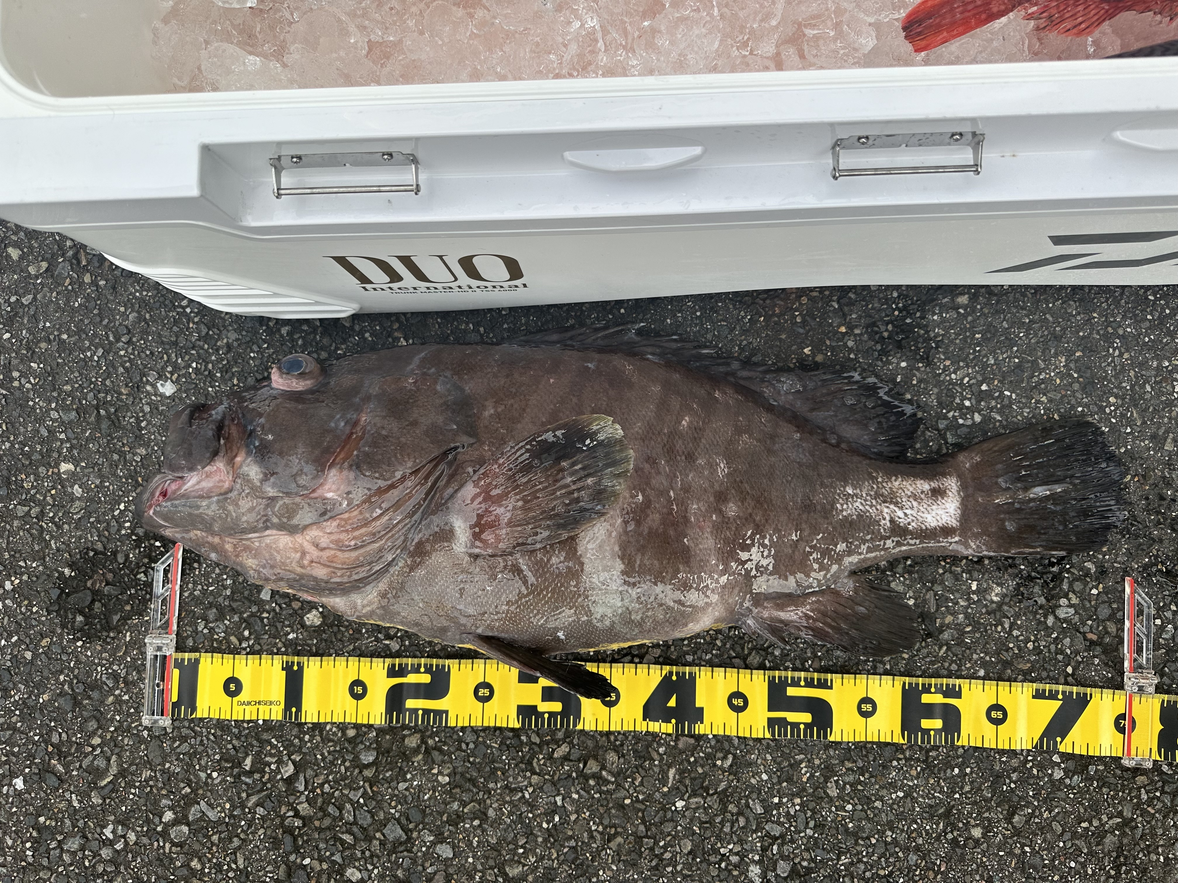 その後はロボ周りで根魚狙い!コニファー250gのマットオレンジゼブラグローを着底から2回程シャクリあげると強烈なバイトで根に潜るように引く引く引く!笑