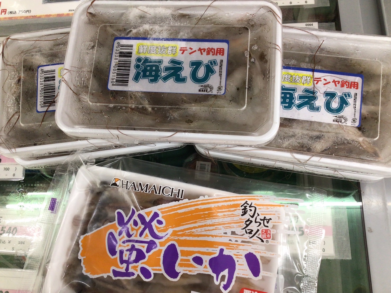 エビ、ホタルイカを針につけ、底をつきながら誘っているとゴゴッとあたりが!