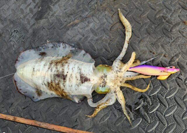 アタリは少なくポツポツと拾い釣りで、船中一番最後でしたが私にもヒット!終了まで変わらずポツポツ追加して最終アオリイカ5、コウイカ1でした!