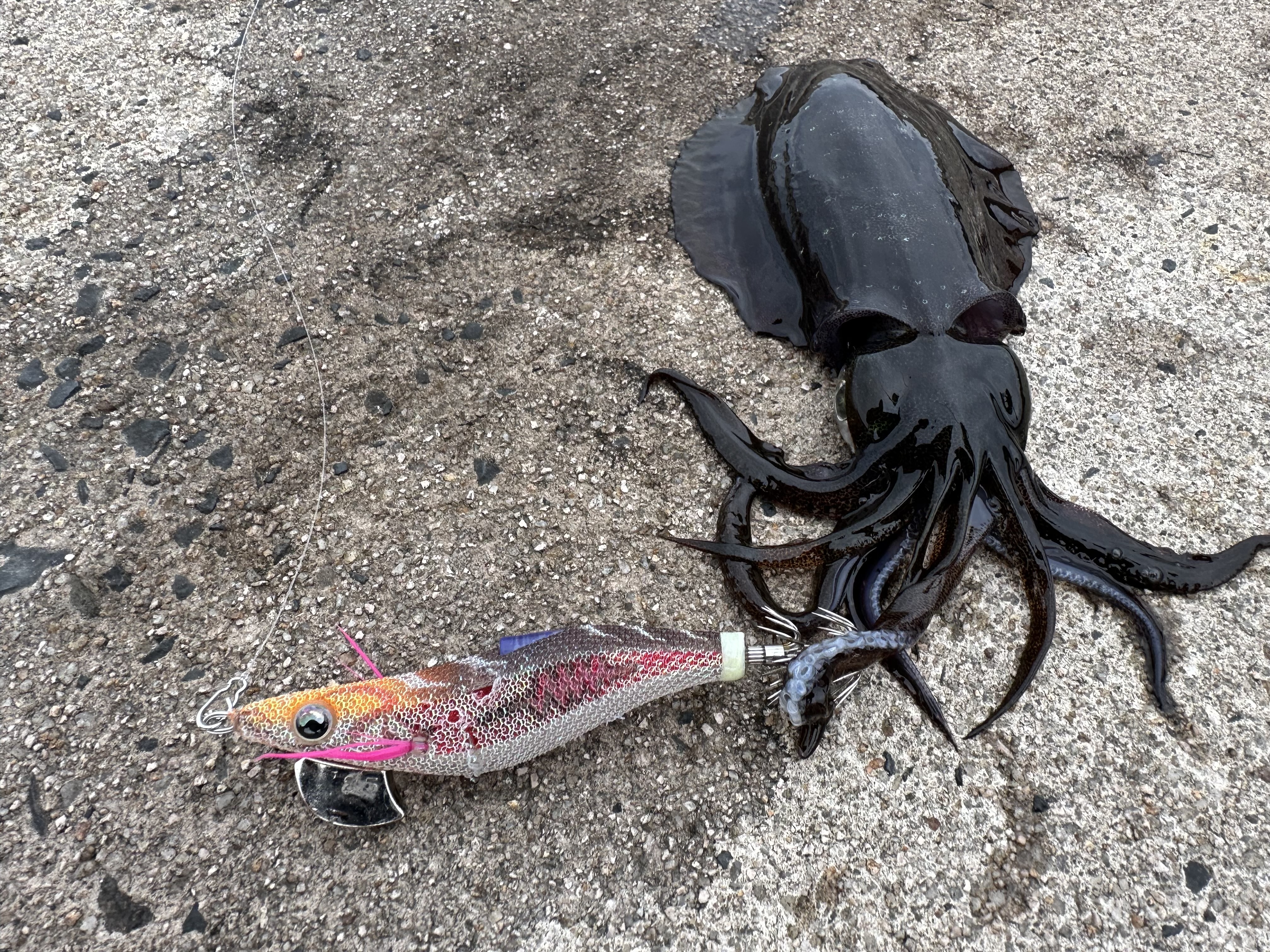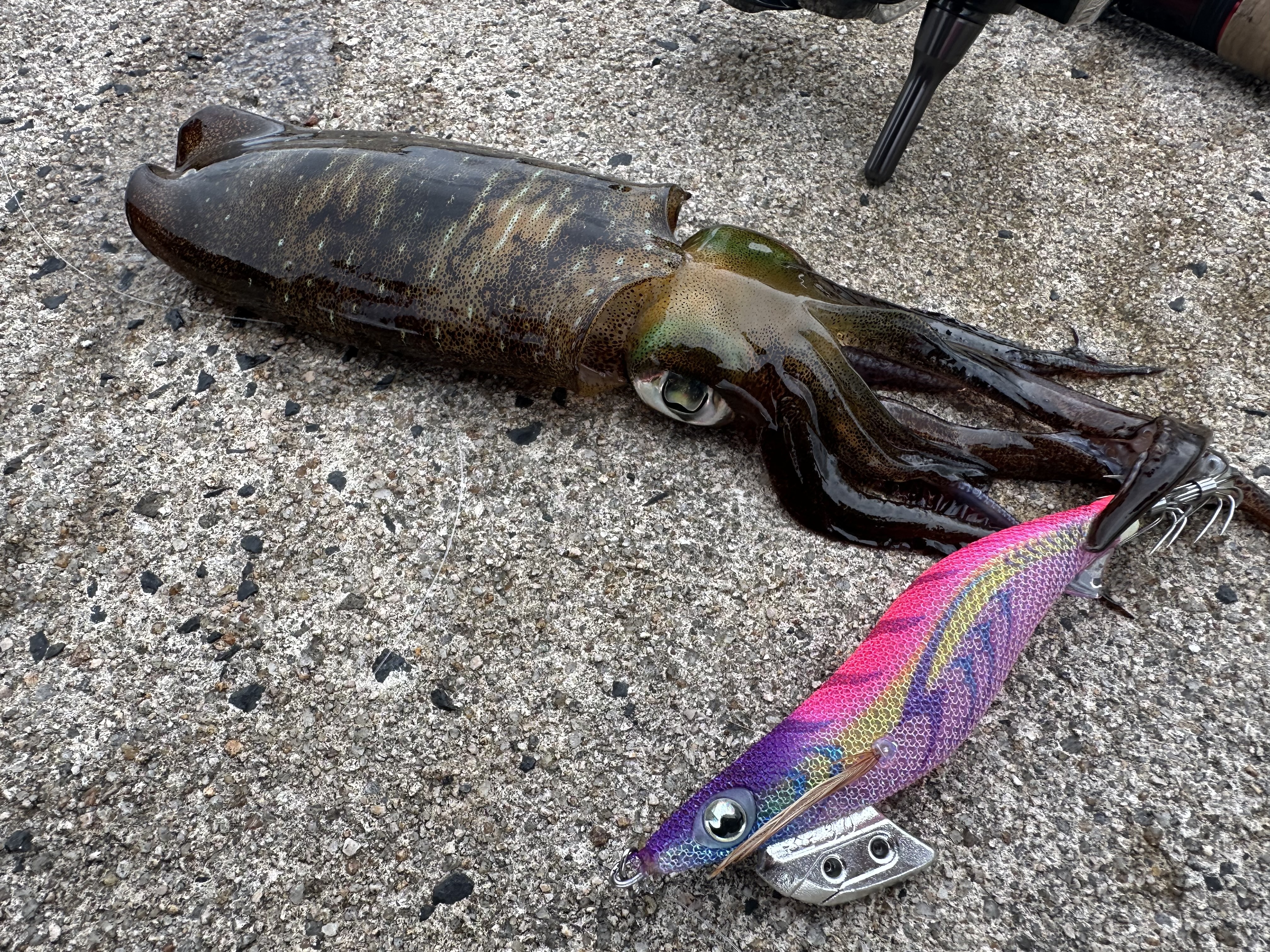 30分だけ行けそうだったので、海に行くと見えイカ大漁!まずはエギ王K3号のムラムラチェリーで1杯!その後、散った感じがあったのでエギ王サーチのショコラブラウンを投入すると集まってきました!