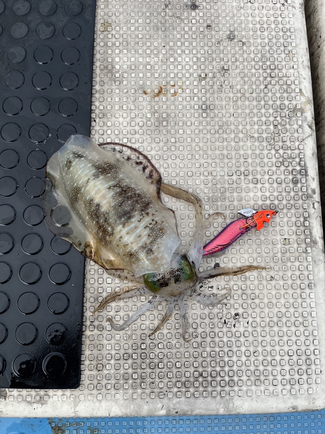 その後、すぐにまたアタリが!!上がってきたのはコウイカでした!こちらは「ピンクパープルゴールド」でヒット!