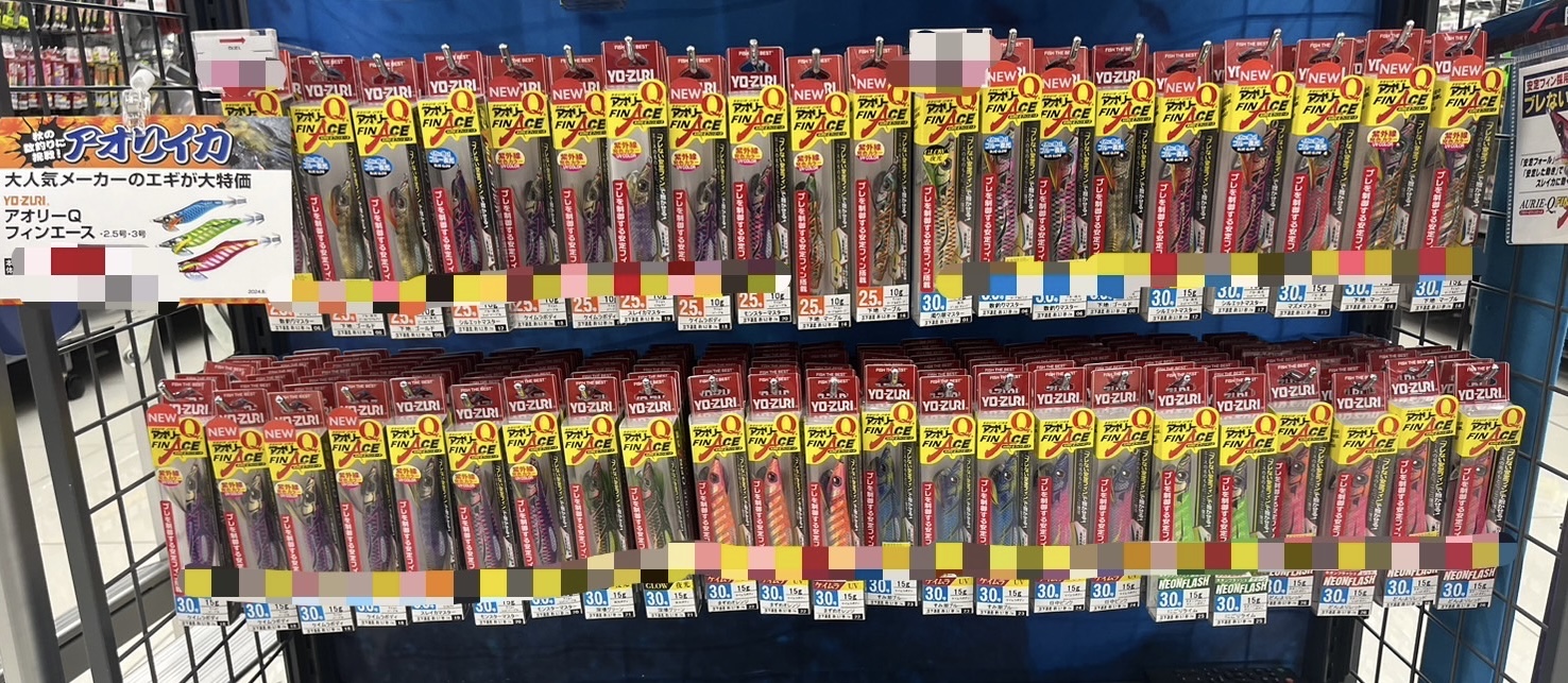 エギは、ヨーズリ「アオリーQフィンエース3号」。カラーは、ブルー夜光パープルレッド。ヤマシタ「エギ王TRシンカー」10gをつけて使用!