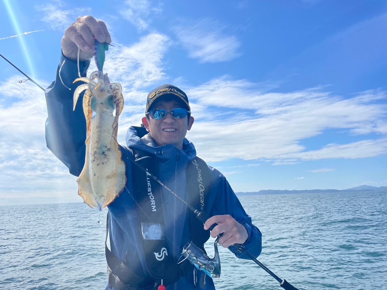 今回は、ある程度エギのウエイトが重くなる為、竿は、クレイジーオーシャン オーシャンソードバーテックスを使用しました。金属穂先は、他のソリッド穂先とは別次元のアタリの表現力!シロートの僕でも、メチャクチャ明確に穂先のアタリを把握できる、ヤヴァい竿!一度使うと、他には戻れませんね…。