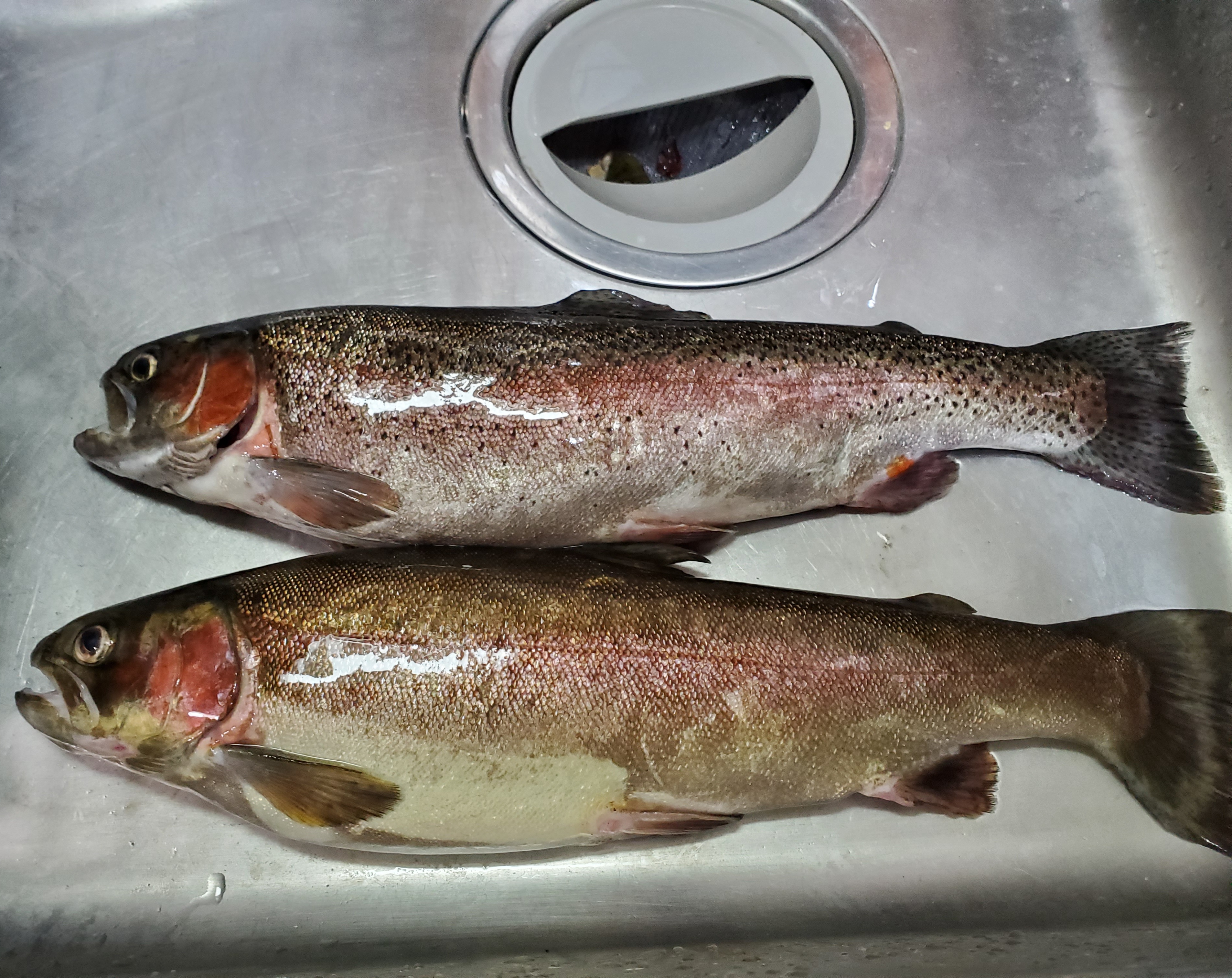 放流直後はセオリー通りのアカキンスプーンで攻めます。すると1投目でチェイス!!水の透明度が高いので、喰った瞬間にアワセを入れHIT!!上がってきたのは40cmオーバーのニジマス!!流石このサイズは良く引きます。その後も放流個体を狙って釣っていきます。アカキンからオレンジに変えて、またHIT!!次は斑点のないホウライマスでした‼️その後は釣れない時間が続きますが、カラーをローテーションしてグロー系に変えると再びHIT!!
