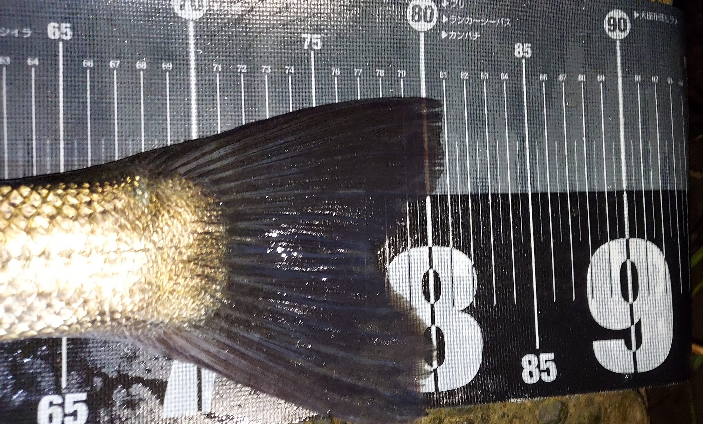 福井県は九頭竜川河口域にシーバス釣行をして来ました。毎年この時期になると1回は行っておきたい場所です。お昼に着いて夕方のマズメ時合狙いでポイントに入りました。南東の風あり、ボラやイナッコは目視でベイト確認出来ました。恐らくこの時期は落ち鮎もあるのではないかと思います。メインでは120mmクラスのルアーを使います。落ち鮎といえばコレ!『モアザン スイッチヒッター120S+R』。アクションが好きなのと、向かい風を物ともしない独特な飛行姿勢で飛距離抜群です。使い方も投げてゆっくり巻くだけです。明るいうちは『モアザン ベリーロール80S』を広範囲で巻いているとサゴシがヒット!嬉しい外道です。汽水域にも刺して来ているのは驚きです。薄暗くなった頃、スイッチヒッターに変更するとファーストヒット!!・・・・何だこれ!?強っ!重た!今までのシーバス経験の中でも飛び切り強い引きです。ド派手なエラ洗い!ランカーだと確信しました。魚体が見え、掛かりどころは悪く無い様に見えたので時間を掛けゆっくり引き寄せました。緊張で手が震え、魚体の長さも相まってネットになかなか入らない。何度かトライして、えいやでランディング成功!頭だけでも20cm超え、デカイ~!計測の結果口閉じで下アゴの先から尾鰭の先端で81cmの堂々たるランカーシーバスです。70UPの壁が越えられないと思っていたのですが80を超えてしまいました(汗)その後もアタリは止まず、時合で60cm前後を3匹追加する事ができました。やはりスイッチヒッター神です!楽しかったけど疲れた~。2日目に続く・・・