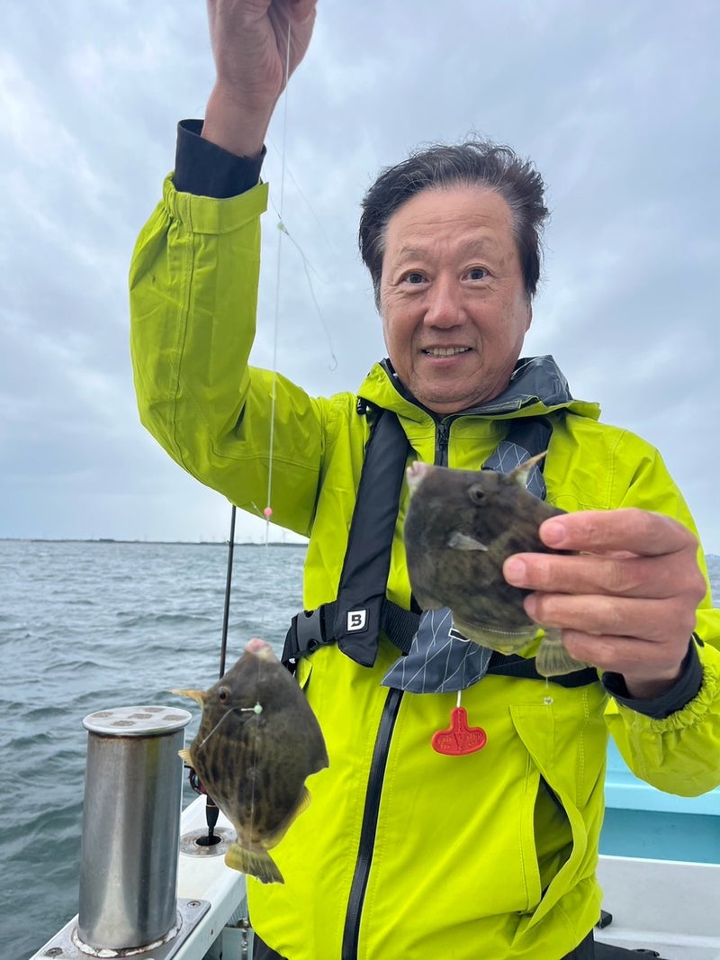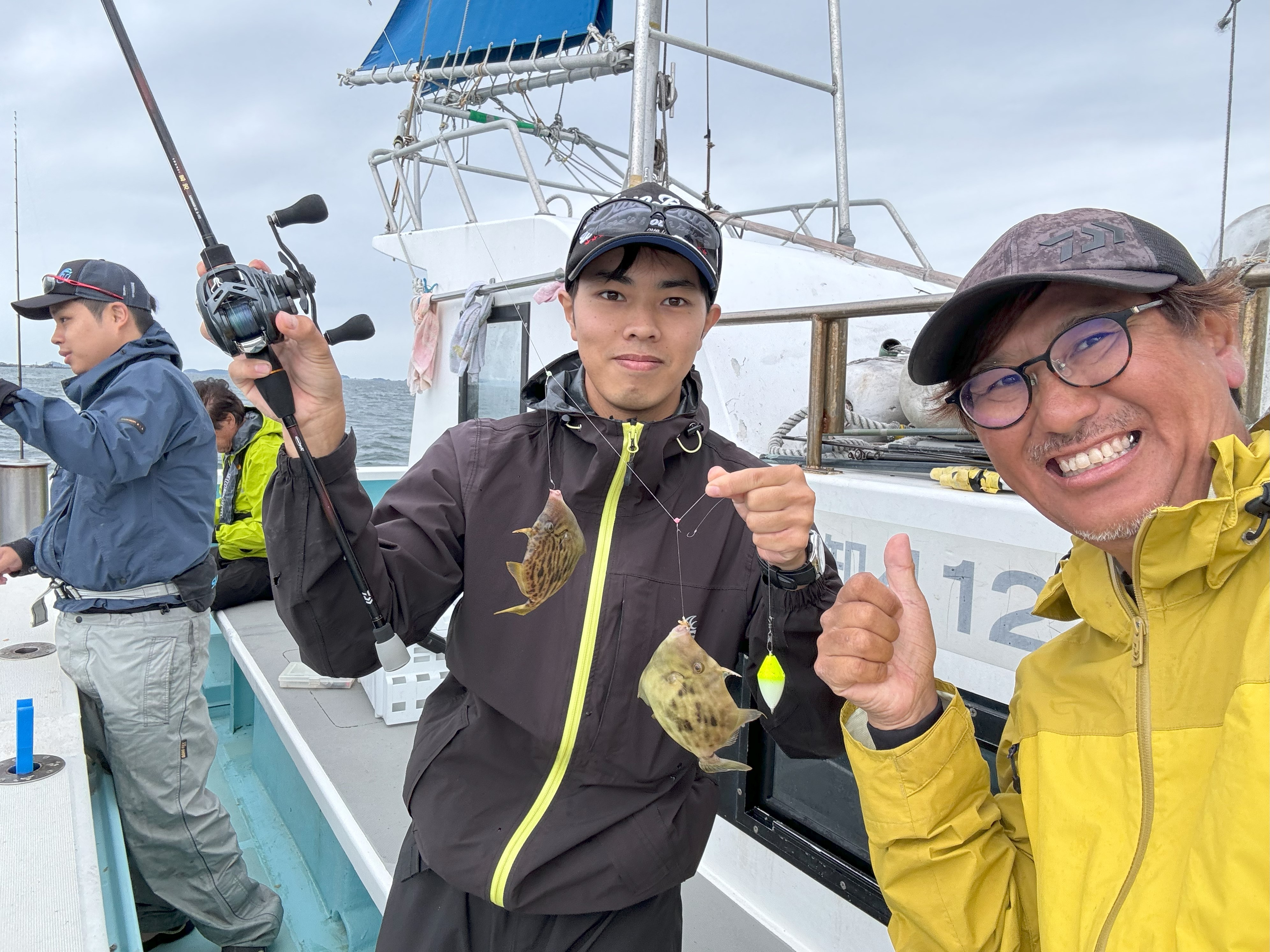 ポイントまでは20分ほど。今日は海が少し荒れ模様。伊良湖ポイントまでは行けず、少し手前で釣ることに。まずは、今回講師として教えていただける宮澤テスター。開始からカワハギをコンスタントに釣っておられ流石でした