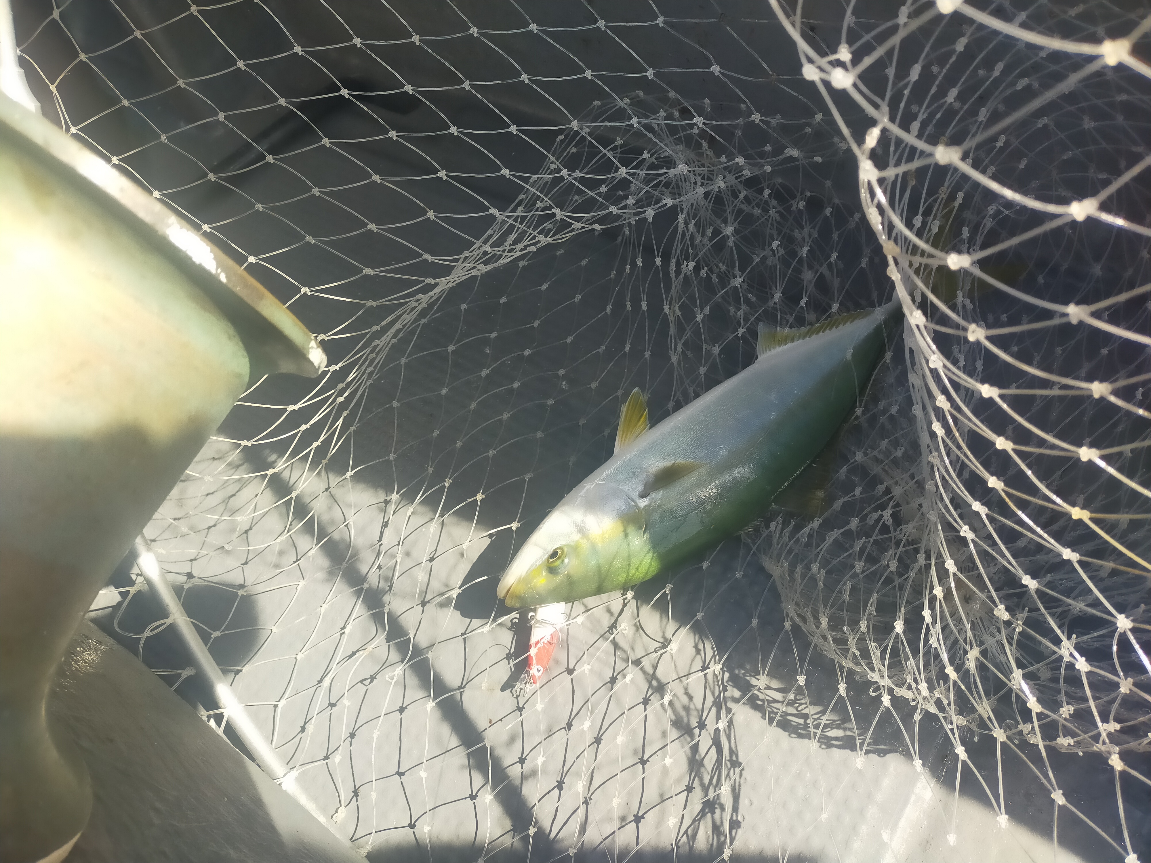 残り時間1時間でやっとヒットしたのにまさかのマツダイ!ナブラ打ちでツバスを釣って終了!