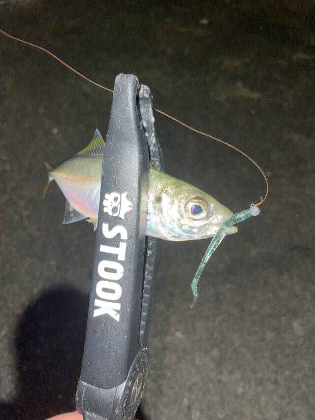 船が終わってから少しだけアジングへ。ジグヘッド0.6g。ワームはアジキャロスワンプとアジアダーの「パシフィックリーサルウェポン」です!