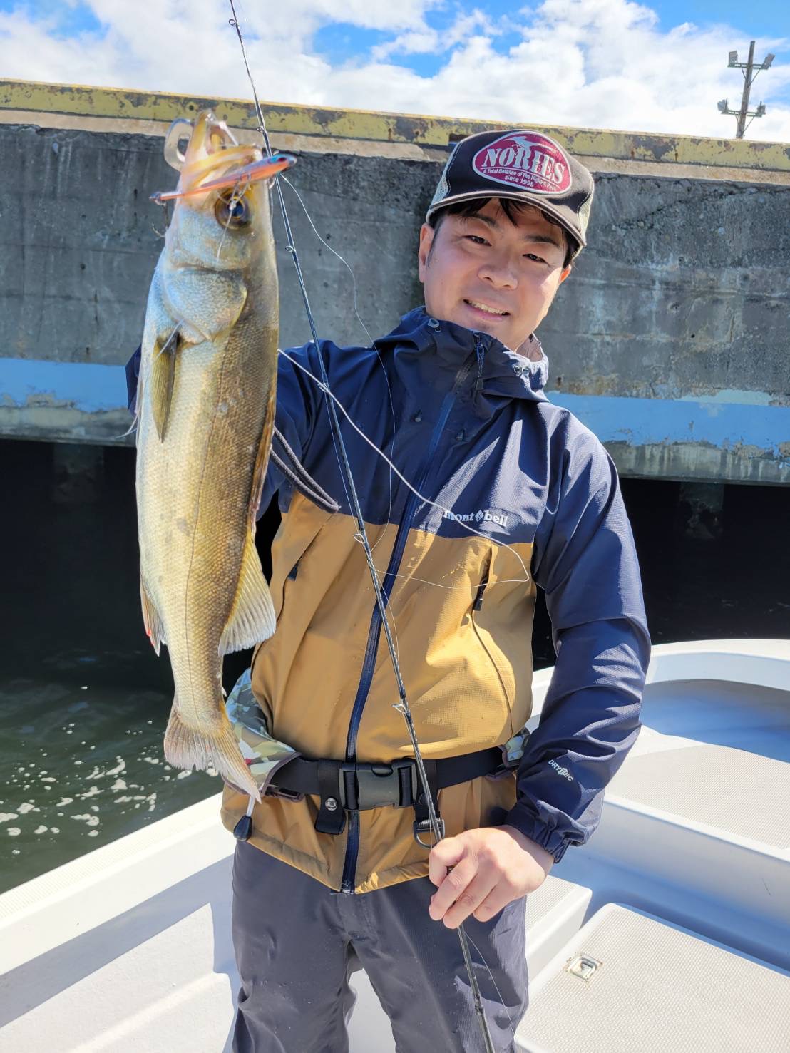 初のISCに参戦してきました!とは言え最終戦だったのですが…中々予定が合わず、ようやく出られました!松坂店の川原田さん、当店の後藤、自分の3人でチャレンジ!今回は当社、遊の冠大会!意気込みも十分。遊チームは「ベイチャンプ」様にお世話になりました!シーバス3匹の長寸で戦うこの試合!目指すは70アップ3本!当日は強風の為、安全を考慮して通常より2時間のディレイ。9時になり、各船出発!20艇ほどが各々のポイントへ走ります。こちらは名港を目指して荒波を超えて行きます。ポイントに到着し、バースをミノーで打って行きます。しかし、全く反応なし…次のエリアもボラが1匹…これは厳しい戦いになりそう…しばらくバースを打ち続けますが、全く反応なし。。粘り強くそのまま奥まで打って行くと、ここでファーストヒット!アイアンマービーで当店の後藤に50センチクラスが!ここから怒涛の入れ食いタイム!アベレージ40から50センチ!ベイトが絡むエリアでキーパーをリミットメイク!とりあえず揃えたので、キッカー狙いに。キャプテンの指示通り、バースを通します。するとズドンとリールが止まります。これはデカイ!!何度も突っ込みをクラッチファイトで耐え、ようやく上がって来たのは明らか70オーバーのふっといシーバス!エラ洗いと同時にネットイン!!大会中なので喜びと興奮も爆発!その後さらにキッカーサイズ追加を狙いますが、バイトのみで終了。無事に帰着し、検量。そして表彰式へ。結果、なんと4位でお立ち台に乗れました!1位のチームはなんと70オーバー3本でリミットメイク。凄すぎです。。色々と勉強になる大会でした。その後も抽選会など楽しい時間を過ごすことができました。あと、「現場のタコ焼き粉」で作ったタコ焼きは美味かった…岩塩とマヨは危険なほど美味い。今度自宅でやってみよう。そして今回、お世話になったベイチャンプ澤井船長(めちゃくちゃ良い船長さんです)、大会関係者の皆様、協賛頂いた各社様、楽しい大会をありがとうございました!来年はできれば?全戦参戦してみたいと思います!