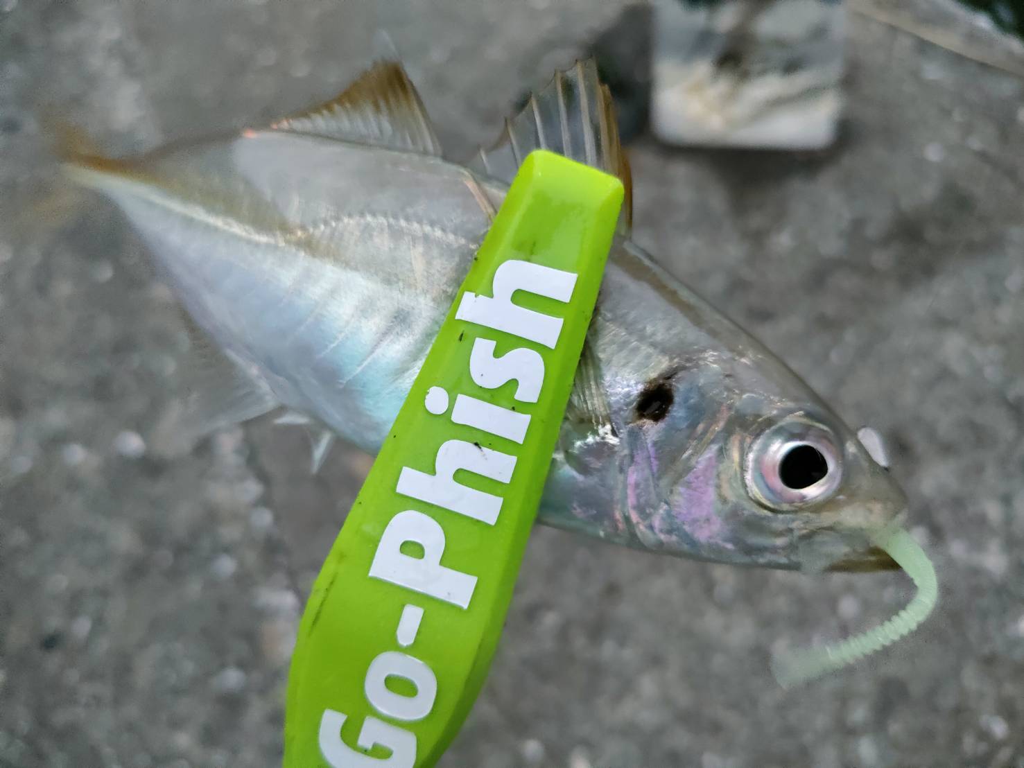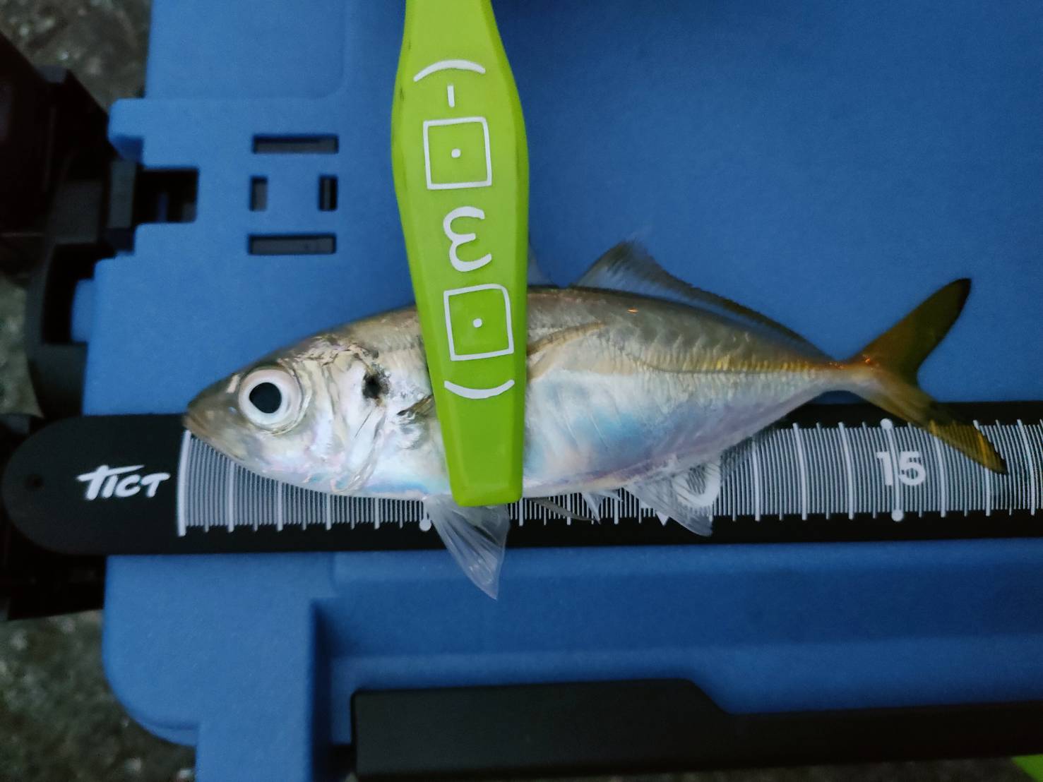 20cmのアジを無事キャッチ!その後も同じレンジを狙うとポツポツと16~20cmのアジが釣れてくれました。