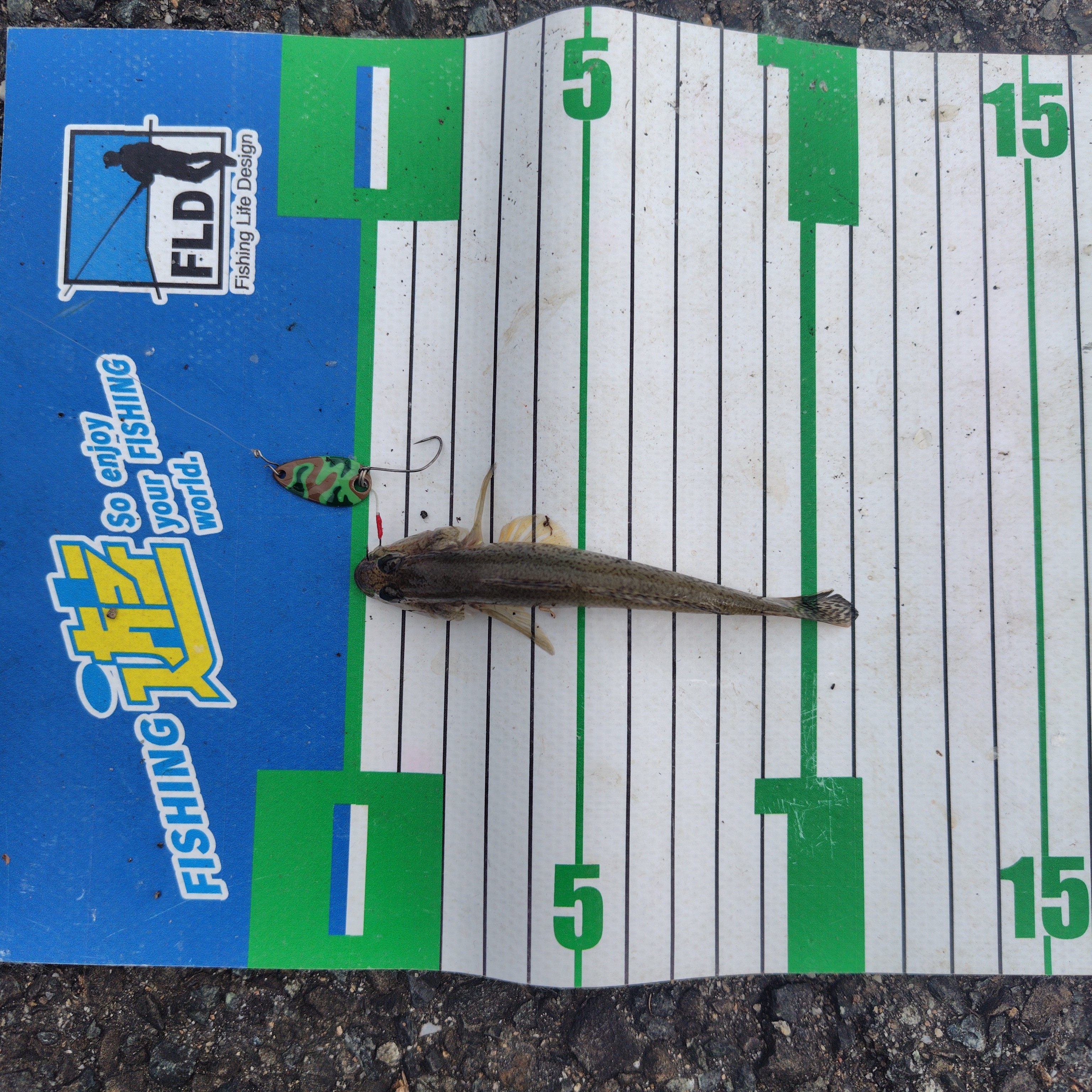 後半は前回に「スプーンで釣れるのか?」が課題でしたのでトラウト用の1.5gスプーンにアシストフックを足して着底後、キュンキュン〜ゆっくり巻くの繰り返しでハゼを。