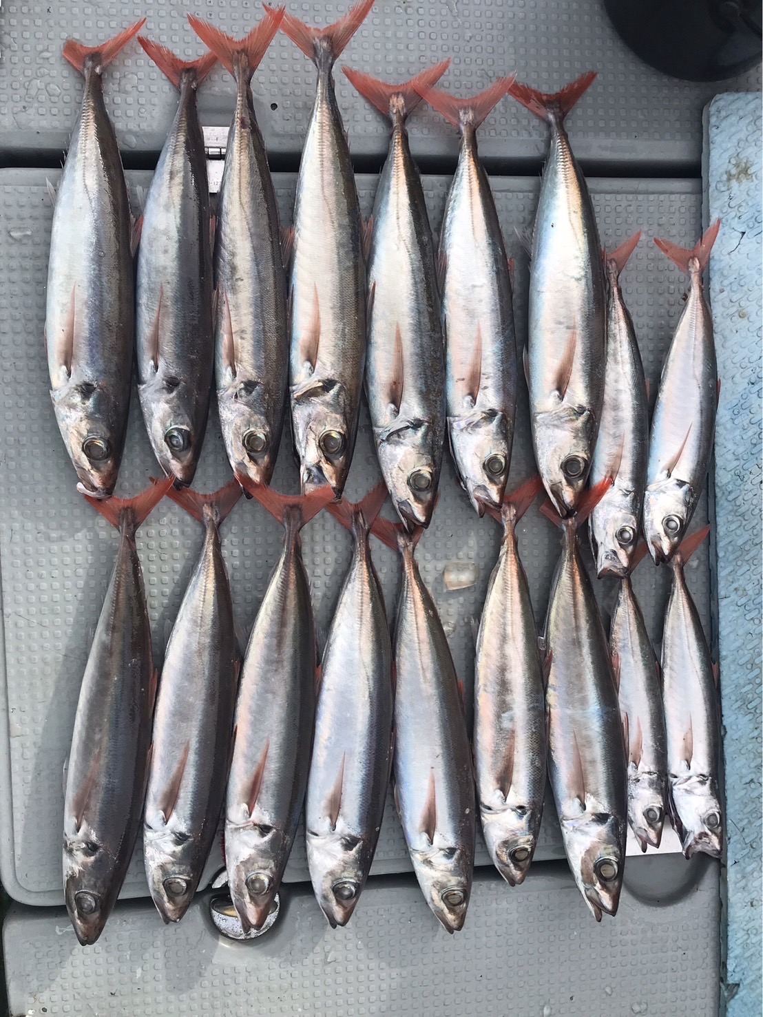 二流し目で自分も同サイズのオアカムロアジが鈴なりになりお土産を確保。