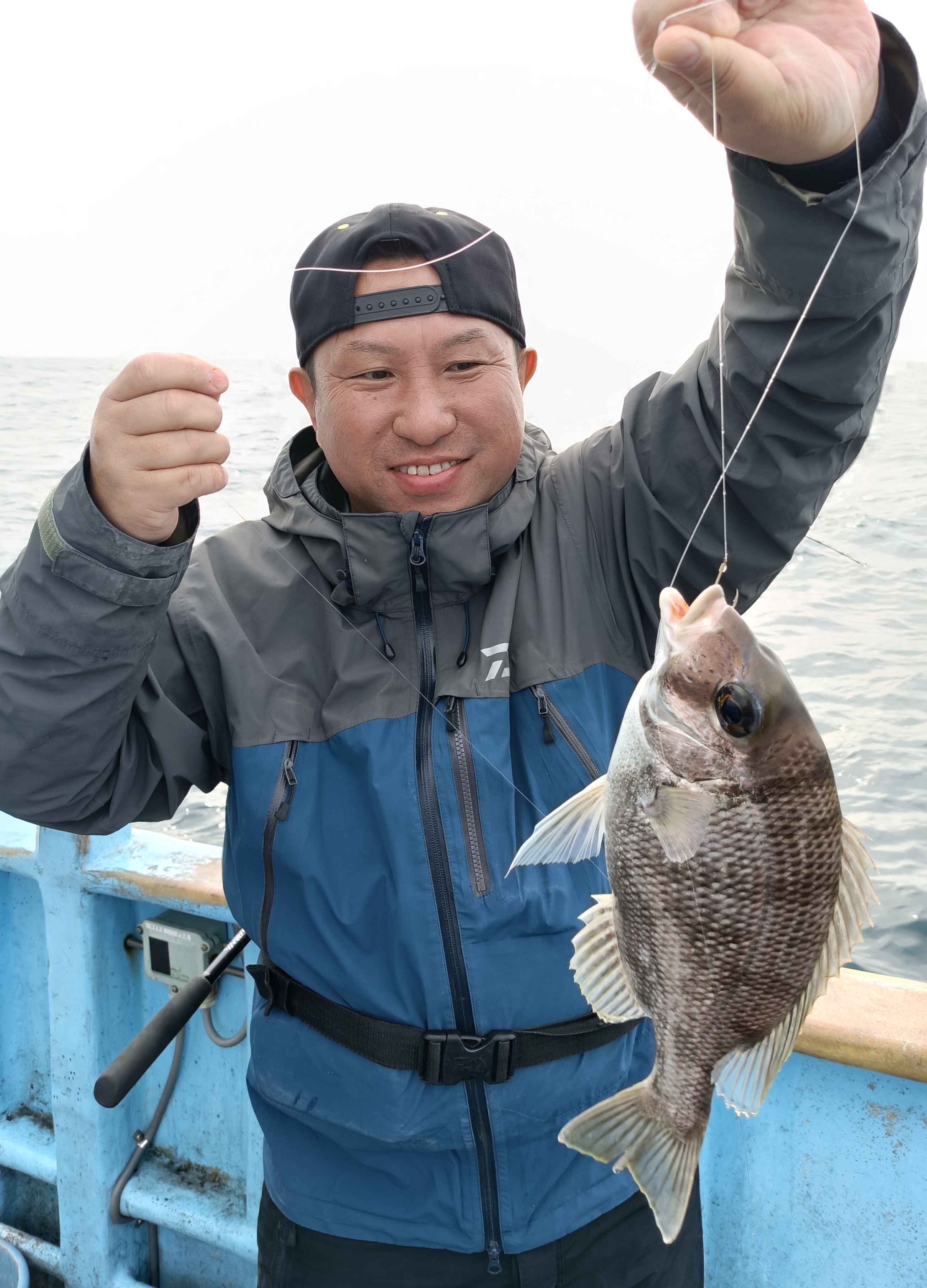 志摩、一八丸さんでシマアジ狙い(^^)出船は5時半!ポイント風&波はあります!ポイントは約40m!天秤仕掛け、オモリ80号、仕掛けはシマアジ仕掛け3mをセットしてスタート(。•̀ᴗ-)✧開始すぐにムロアジラッシュ(*´ω`*)狙いはあくまでシマアジ!裏本命は、ヤイトガツオ(☆▽☆)ですが…小ダイ、メイチダイ、ウスバハギ、など魚種多数(*´ω`*)船中は、カサゴ、カワハギ、オジサンなども上がり、1本羨ましいヤイトガツオまで(☆▽☆)途中に本命らしき引きの魚が来ましたが…針外れ<( ̄︶ ̄)>11時半に納竿となりました(*´ω`*)